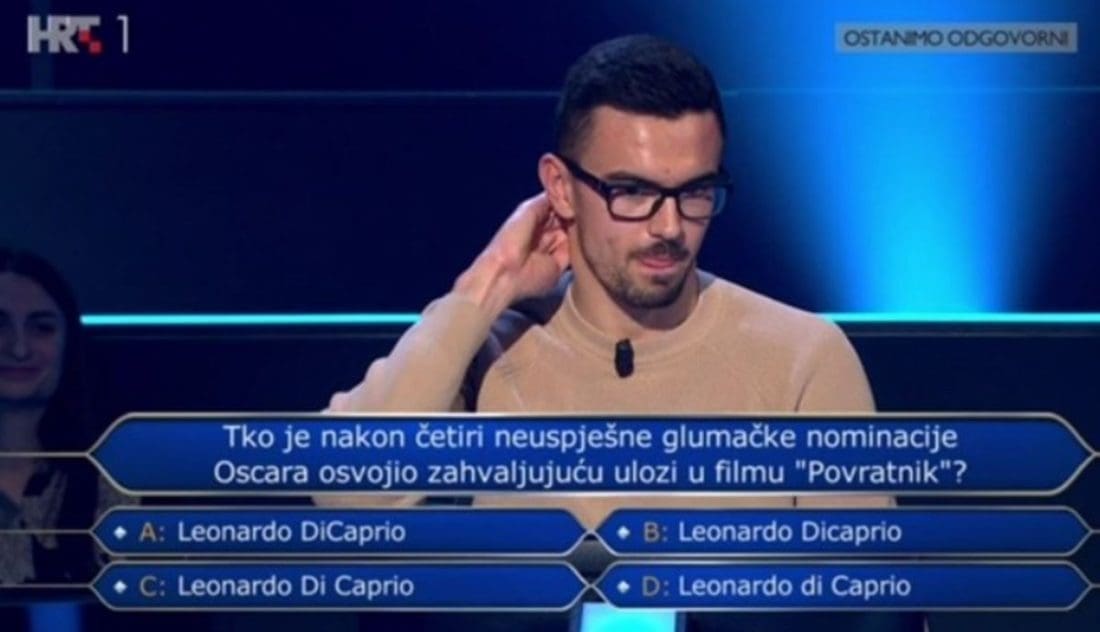 Cijeli svijet, pa i Luka, zna tko je glumac koji je dobio Oscara za ulogu u filmu Povratnik nakon niza neuspješnih nominacija. Međutim, izgleda da mnogi ne znaju kako se piše ime slavnog glumca.