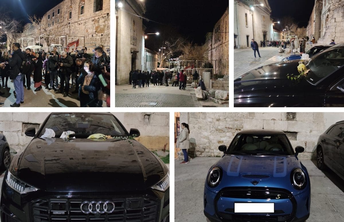 Snimili smo i luksuzne automobile ispred crkve. Kako smo doznali, to su ukrašeni automobili kumova Petra i Hane. U ovim trenucima, mladenci se još uvijek nestrpljivo iščekuju.