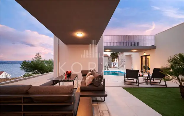 Na samo 17 km od Splita, u mjestu Dugi Rat, smještena je ova luksuzna samostojeća vila stambene površine 225 m2, koja se nalazi na zemljištu površine 590 m2.