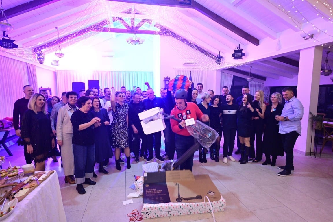 Na domjenku je uživalo 70-ak ljudi, uz izvrsnu hranu i poslugu Cateringa Cetina te slastičarske delicije "As Panina". Za nezaboravan glazbeni doživljaj pobrinuli su se Branko Medak i Domagoj Mustapić, dok je bogata lutrija dodatno obogatila večer. Atmosferu je zaokružila tradicionalna gesta zaposlenika koji su direktora iznenadili darovima – novim Hajdukovim rekvizitima i električnim romobilom.