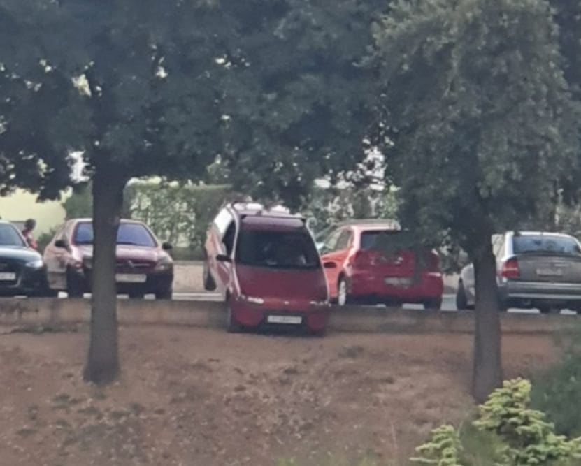 Nesvakidašnje parkiranje zabilježeno je na Neslanovcu. Vozač je preletio mali zidić i tako ostao sa dva stražnja kotača u zraku.