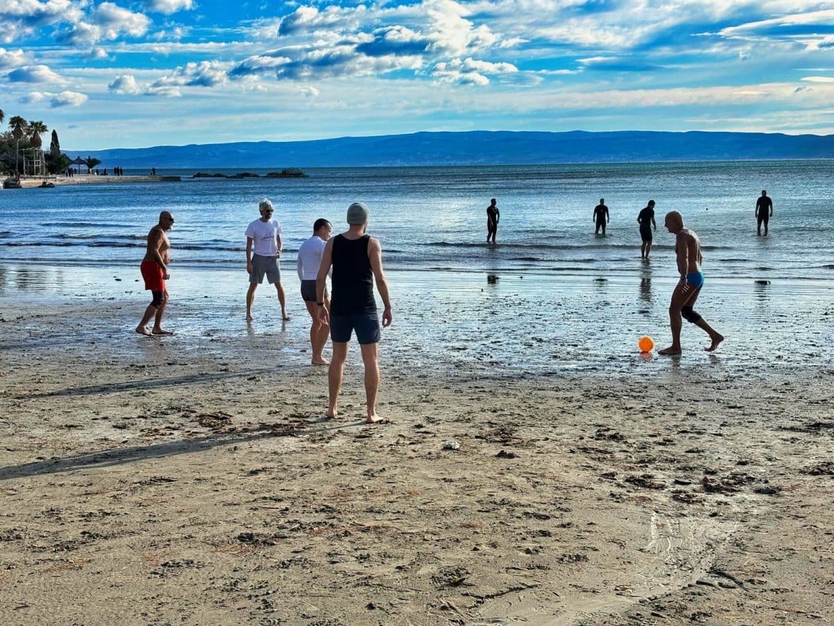 Bura je dodatno rashladila zrak i more, ali to nije spriječilo okupljene da uživaju u sportu i zajedništvu. Atmosfera na Bačvicama bila je vesela i dinamična, pružajući pravi blagdanski ugođaj svima koji su došli.