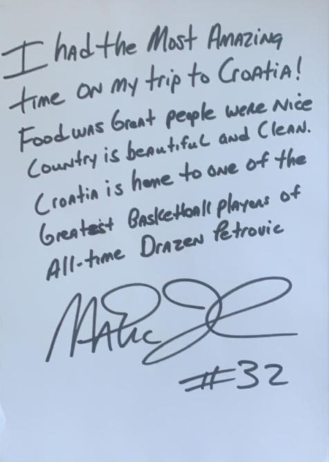 Jedan od najvećih košarkaša svih vremena Magic Johnson ovog je ljeta stvorio posebnu vezu s Hrvatskom. Legendarni Laker uživao je u ljepotama naše obale, a po povratku u Ameriku poslao je osobnu poruku Biserki Petrović, majci nikad prežaljenog Dražena. Magic je u rukom napisanoj poruci istaknuo koliko je uživao u Hrvatskoj, a našeg košarkaškog Mozarta izdvojio kao jednog od najboljih svih vremena.