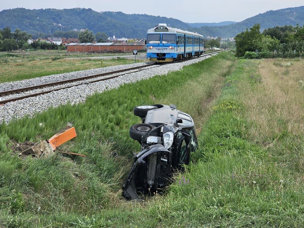 Automobil je odbačen na travnatu površinu pokraj pruge gdje je završio na boku. Zasad nije poznata težina ozljeda majke i djeteta iz automobila.