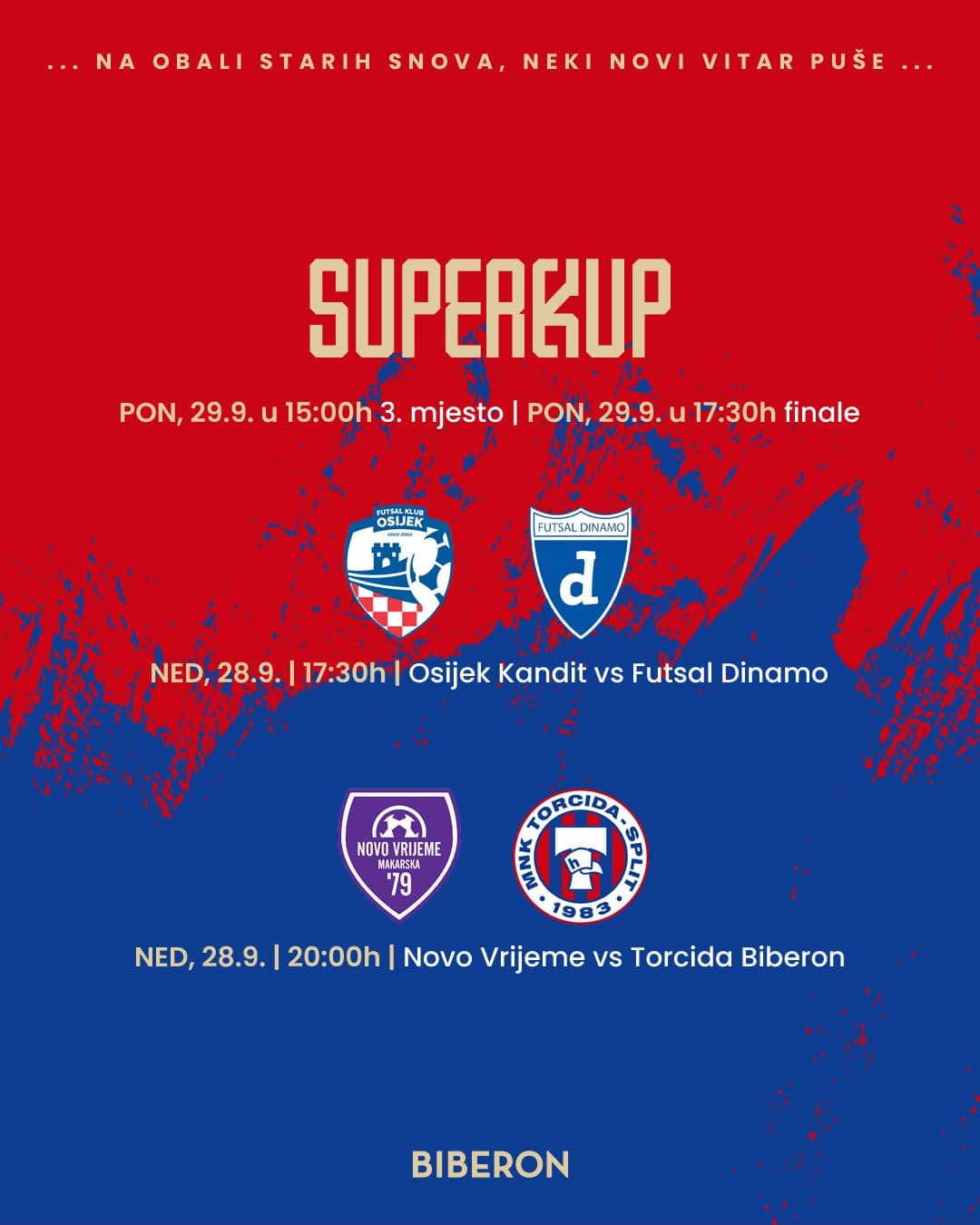 Makarska će ovog vikenda biti domaćin Superkupa, koji donosi pravu futsal poslasticu. U nedjelju, 28. rujna na rasporedu su polufinalni dvoboji, dok će se u ponedjeljak, 29. rujna igrati utakmica za treće mjesto i veliko finale.