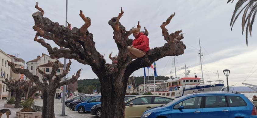 Tako je jedan muškarac ove subote u Makarskoj zatečen na -stablu na rici. Mirno je sjedio uživao u pogledu, piše Makarska Danas.
