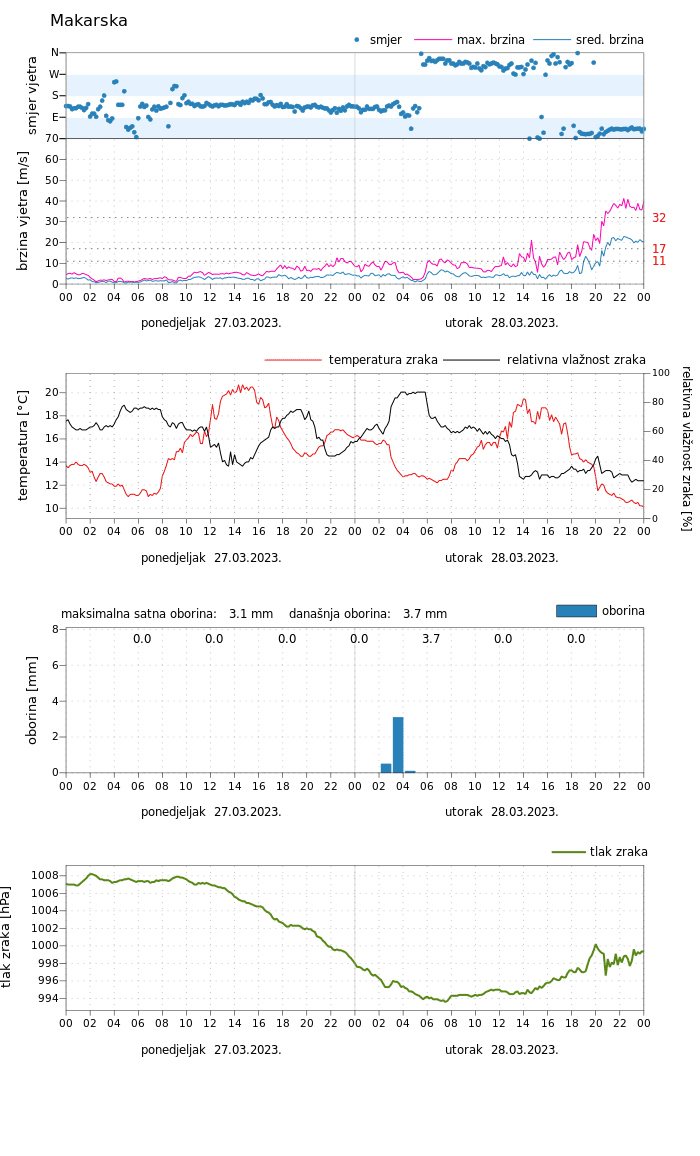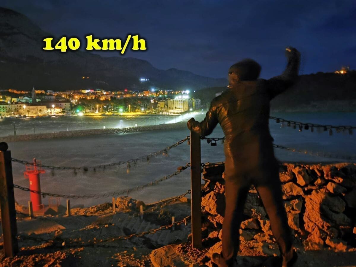 Prema podacima DHMZ-a, bura uvjerljivo najjače puše podno Biokova. Službena postaja Osejava u Makarskoj do 1 sati iza ponoći izmjerila je najjače udare do čak 140 km/h.