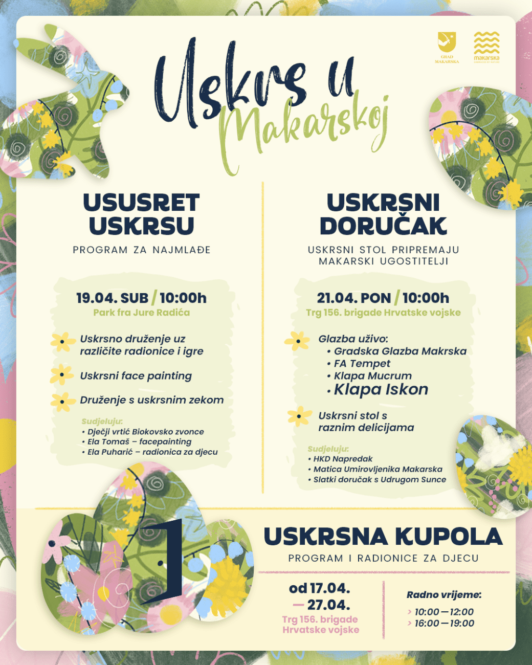 Grad Makarska i Turistička zajednica grada Makarske i ove godine pripremili su prigodan program povodom uskrsnih blagdana, s naglaskom na sadržaje za djecu, kao i tradicionalni uskrsni doručak za sve građane i posjetitelje.