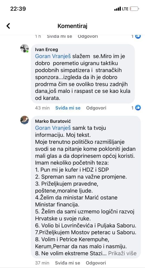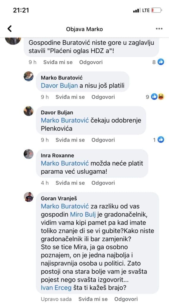 Podsjećamo, prof. Marko Buratović je pod naslovom “S(v)inski mazohizam” napisao kritike na račun Sinja i Mira Bulja.