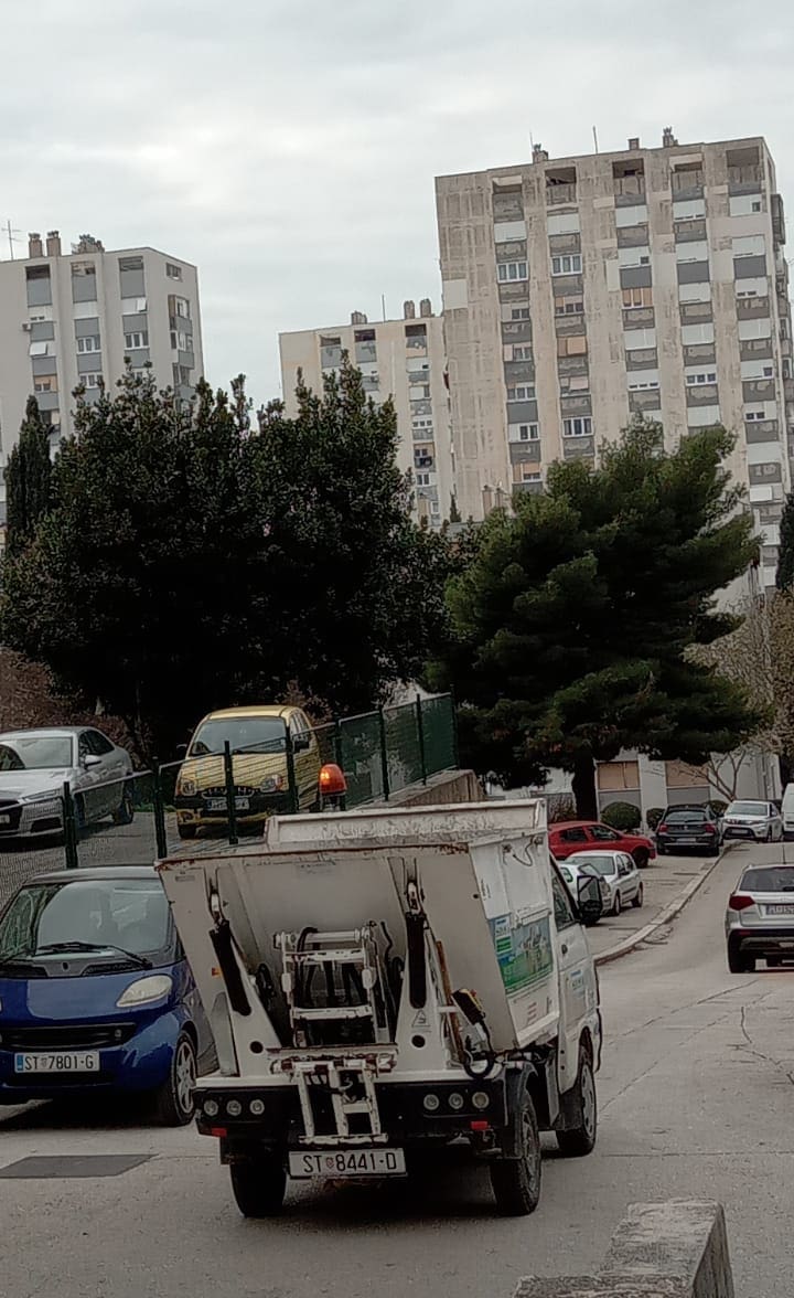 Naime, kamion čistoće nije mogao pristupiti polupodzemnim spremnicima kod Iločke ulice br. 23 u Splitu zbog parkiranih automobila.