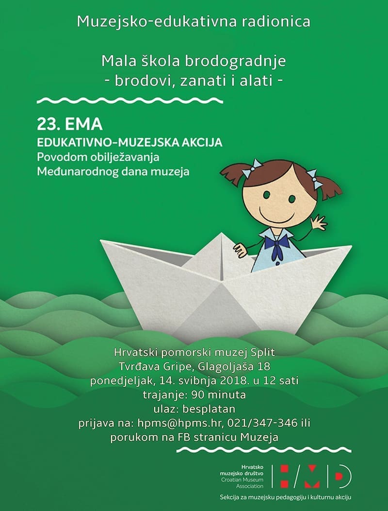 Ususret Međunarodnom danu muzeja koji se obilježava 18. svibnja, Hrvatski pomorski muzej Split organizirao je za djecu besplatnu muzejsko-edukativnu radionicu „Mala škola brodogradnje – brodovi, zanati i alati“.