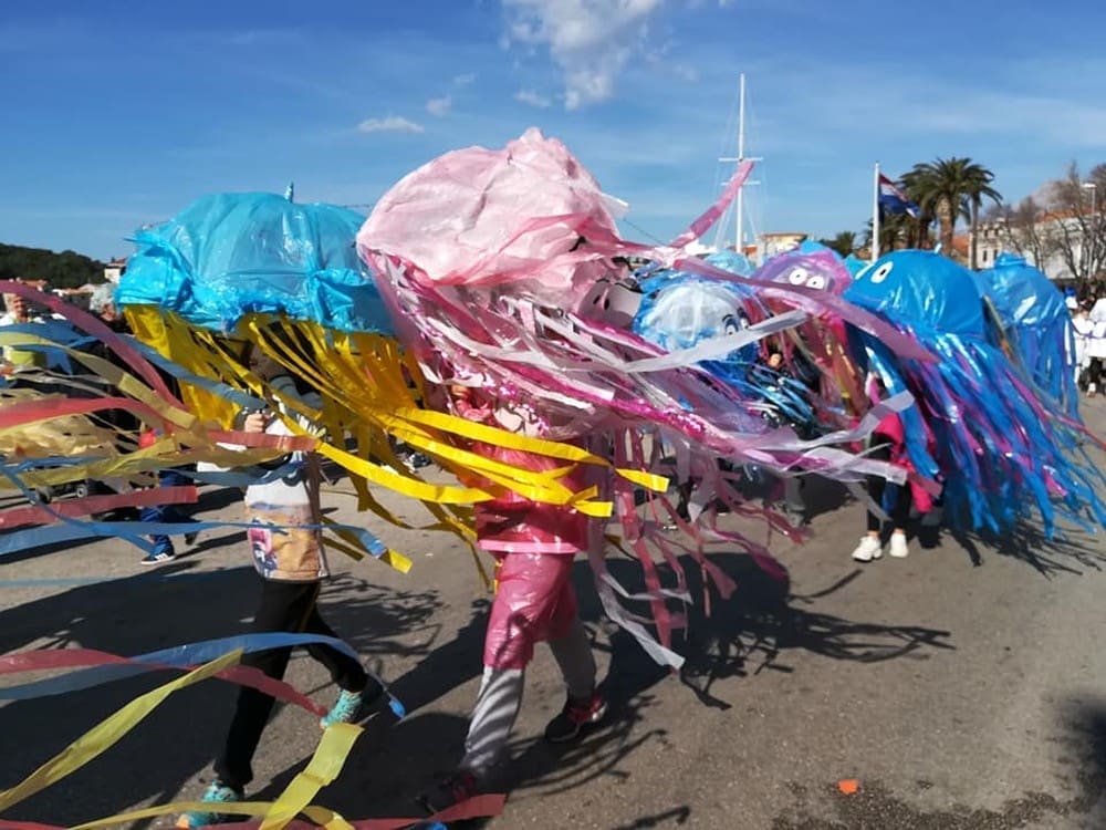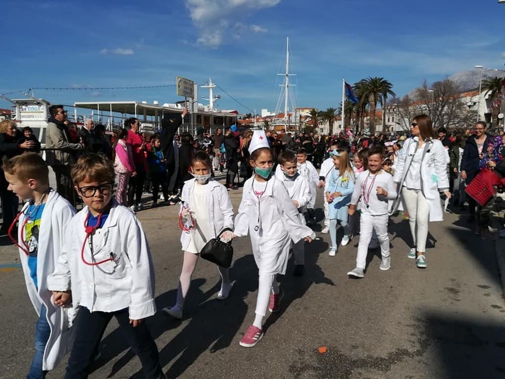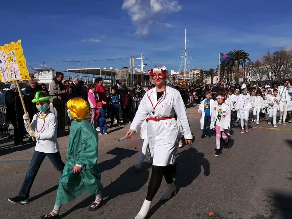 Male maškare okupirale su rivu već i prije 10 sati, a potom je šarolika kolona, u kojoj ste mogli vidjeti od snjegovića, vikinga, doktora, nogometaša, pa do dimnjačara, Maše i medvjeda, rock’n’rolla, morskih pasa i drugih bića iz jadranskih dubina, polako krenula prema Gradskoj sportskoj dvorani gdje se održavalo predstavljanje grupa te zabavni program kojeg je vodio provjereni dvojac – Dražen Kuzmanić i Toni Štulić, javlja Makarsko primorje.