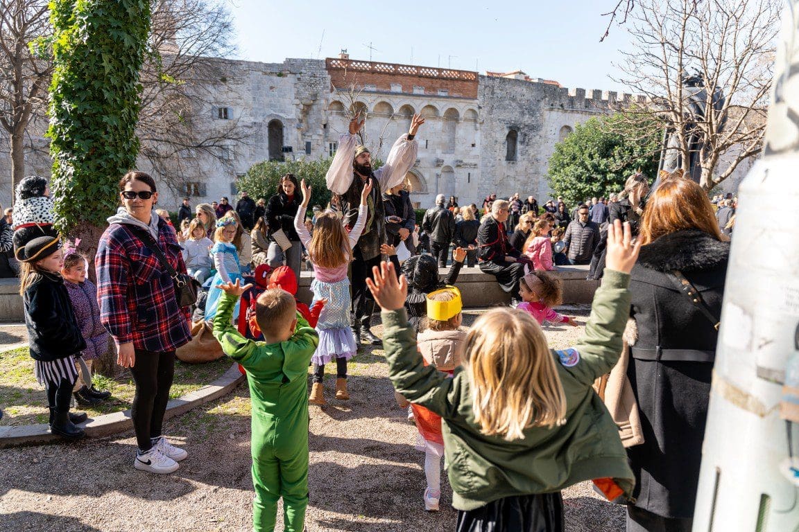 U 10 sati je krenulo okupljanje u Đardinu odakle se maškarana povorka na čelu s Promaya bendom i Mažoretkinjama grada Splita uputila na centralnu pozornicu na Prokurativama gdje su njih i sve prisutne dočekali Čarobni animatori.