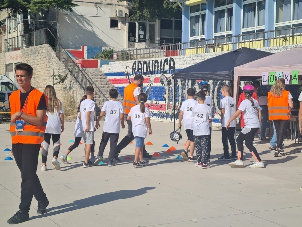 Pred školom se okupilo 60 malih biciklista natjecatelja, 20-ak članova Volonterskog kluba Lučac, djelatnici i volonteri Volonterskog centra Split i predstavnici Gradskog društva Crvenog križa Split, koji su brinuli o sigurnosti natjecatelja.