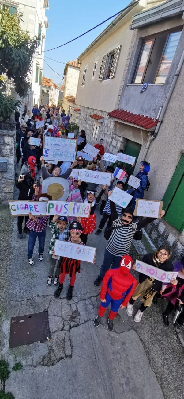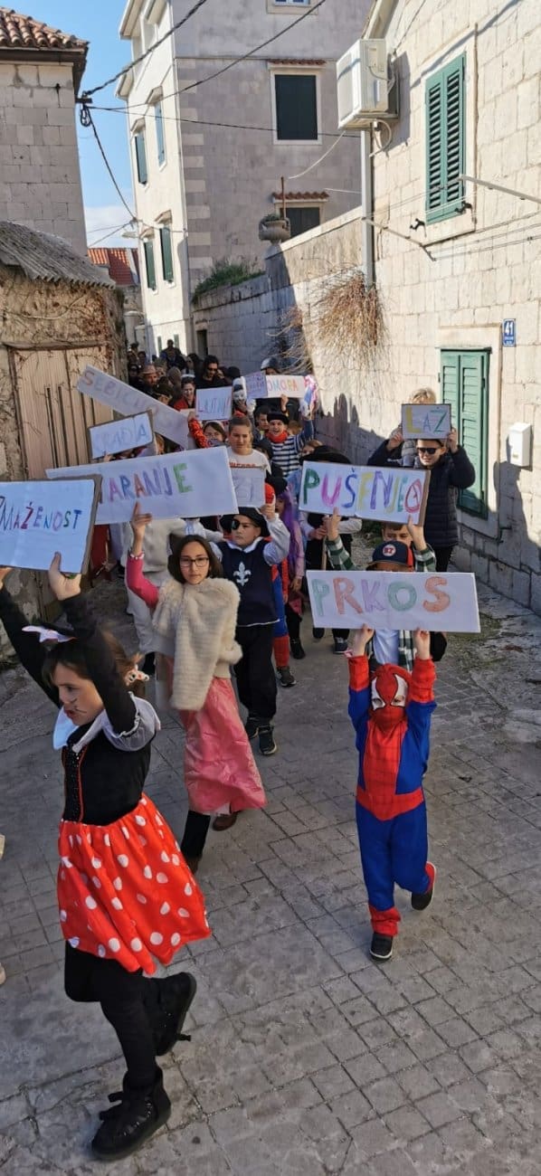 Vrijeme ih je ovog puta poslužilo, bura je popustila pa su napravili đir po vranjičkim kalama i oko samog poluotoka. Počastili su se krafnama i zaigrali tombulu te uz mačkarani ples izabrali najbolju dječju masku.
