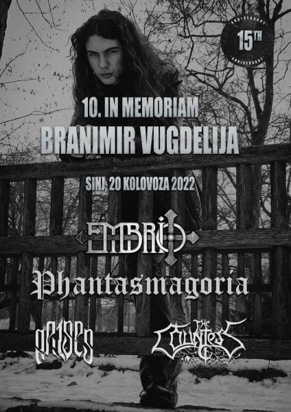 - Ove godine obilježavamo 15 godina od Branine smrti, a na 10. memorijalu slavit ćemo njegovu glazbu, ideje i lik. Memorijal će se održati na obnovljenom Košarkaškom igralištu ‘Mladen Pavić – Kembo’ u Sinju, s početkom u 20:00 sati. Program festivala otvaramo sa projekcijom dokumentarca "In Loving Memory of Branimir Vugdelija", nakon kojeg će nastupiti Branin bend Embrio, koji se ponovno okuplja samo za ovu prigodu, a osim njih tu su i The Countess (Sinj), Arises (Zadar) i Phantasmagoria (Zagreb) - poručuju organizatori.
