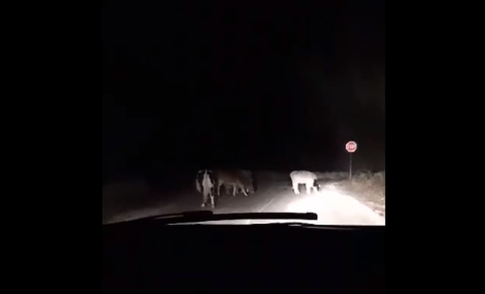 Facebook stranica "Prometne zgode i nezgode" objavila je video iz trogirskog zaleđa. Naime, tijekom noćne vožnje vozač automobila je naletio na krave na cesti.