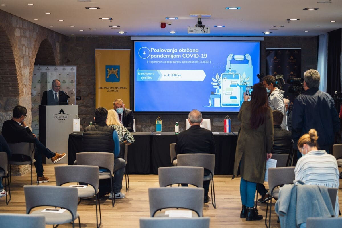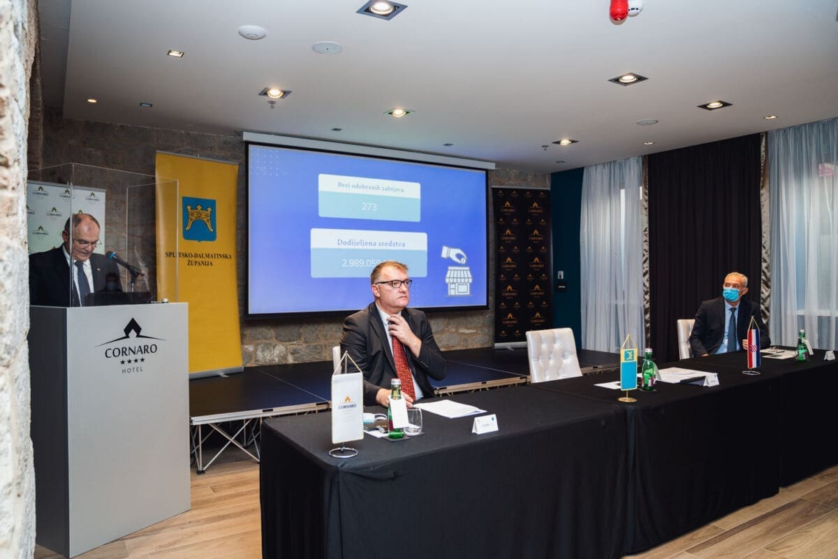 "Nalazimo se u izazovnom vremenu. Da nije izazovno danas bi bili u nekoj većoj prostoriji i bilo bi prisutno 106 potpisnika ugovora, od njih ukupno 274 koji su dobili rješenja u ovim mjerama za poticaj. Ali kako nisu tu, na ovaj način prezentirat ćemo vam što smo radili tijekom ove godine", kazao je uvodno župan Splitsko-dalmatinske županije Blaženko Boban.