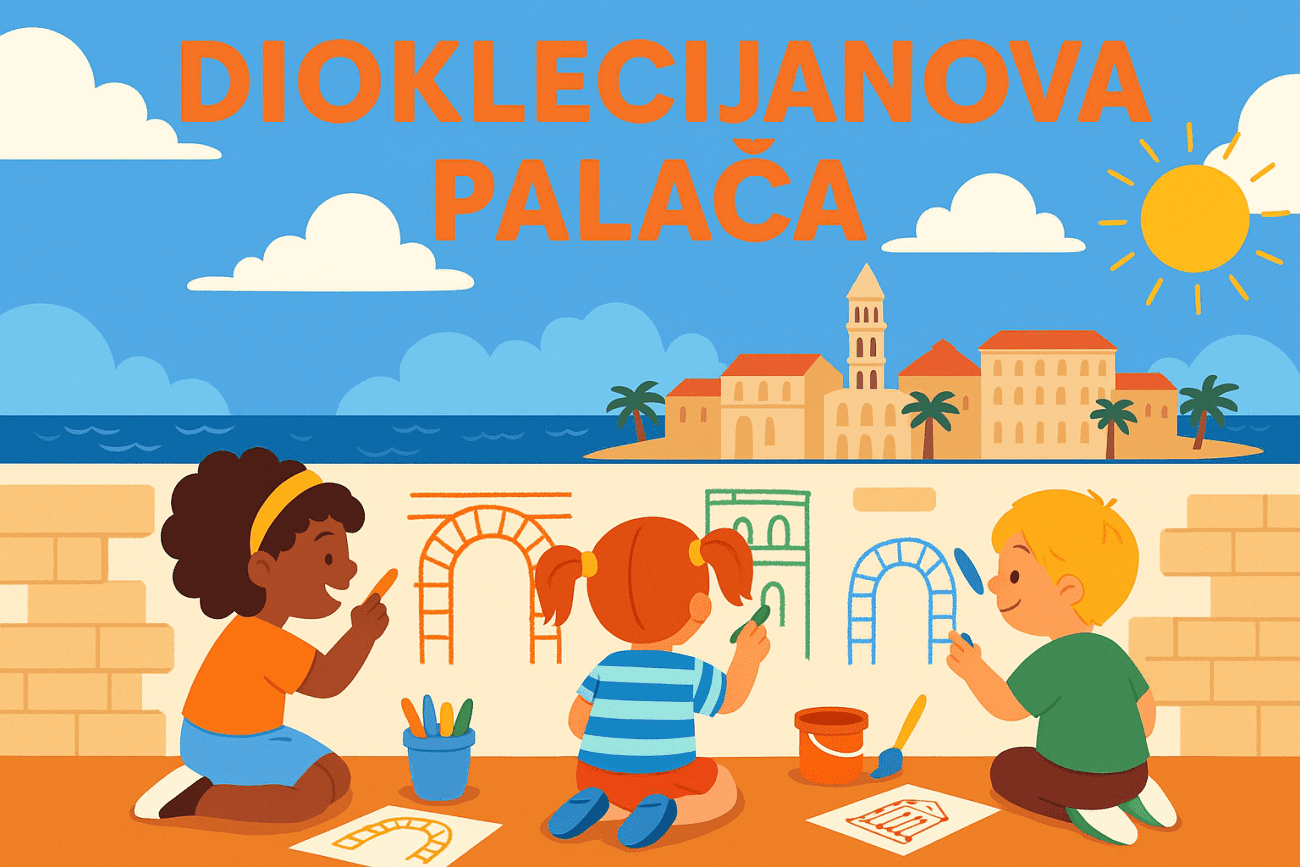 Pod vodstvom Karmen Vrgoč, mali će sudionici na zanimljiv i pristupačan način upoznati cara Dioklecijana i njegovu znamenitu palaču – jedan od najvažnijih simbola Splita. Kroz razgovor, igru i likovno stvaralaštvo, djeca će učiti prepoznavati dijelove palače: zidove, tornjeve, vrata i peristil. Nakon toga, svatko će imati priliku osmisliti vlastitu verziju Dioklecijanove palače – onako kako je zamišlja kroz svoje oči i maštu.