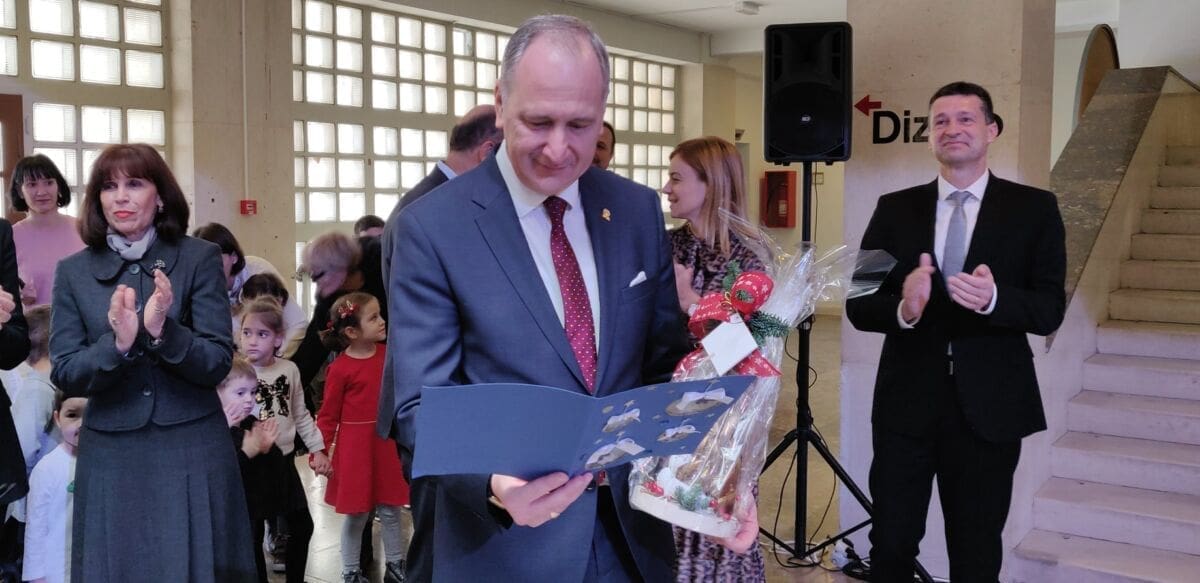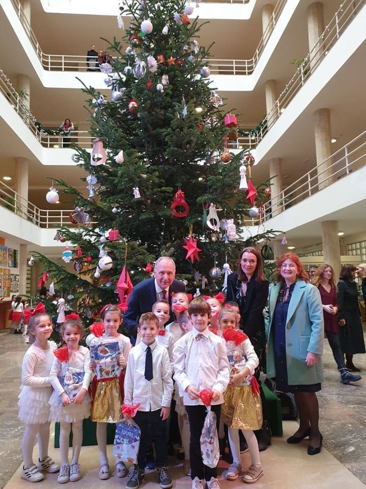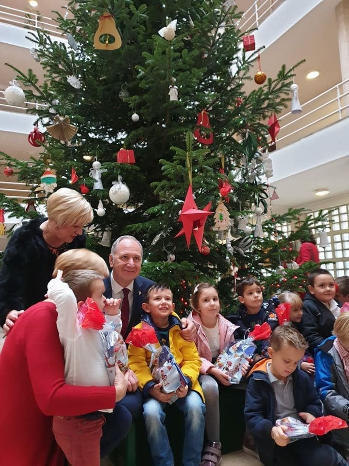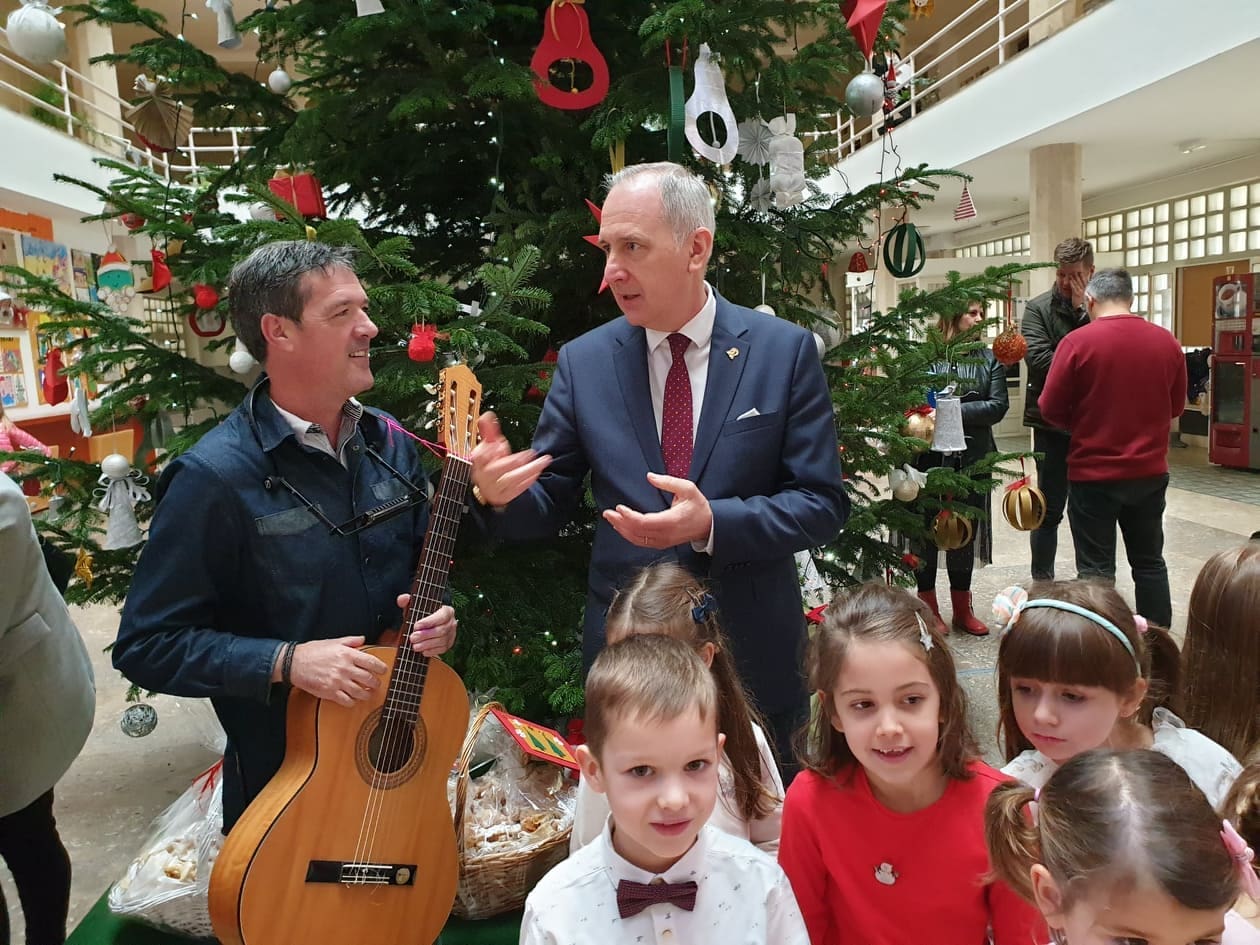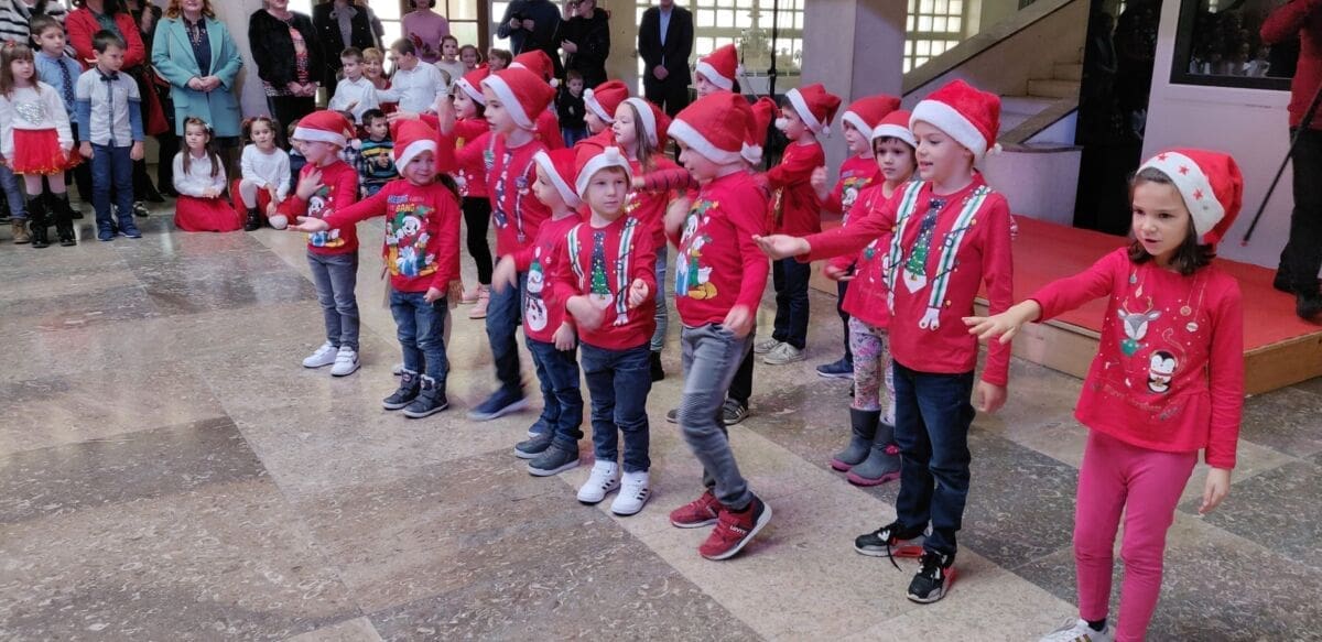 Pljesak je ispunio atrij Banovine, a čestitke prštale na sve strane:- Sretan Božić i Nova godina svima koliko vas ima, uzviknuli su u glas mališani na zamolbu gradonačelnika koji im je uzvratio čestitkama i lijepim željama za nadolazeće blagdane: - Hvala u ime svih zaposlenika što ste nam donijeli osmijeh na lica, kazao je gradonačelnik uz gromoglasan pljesak.