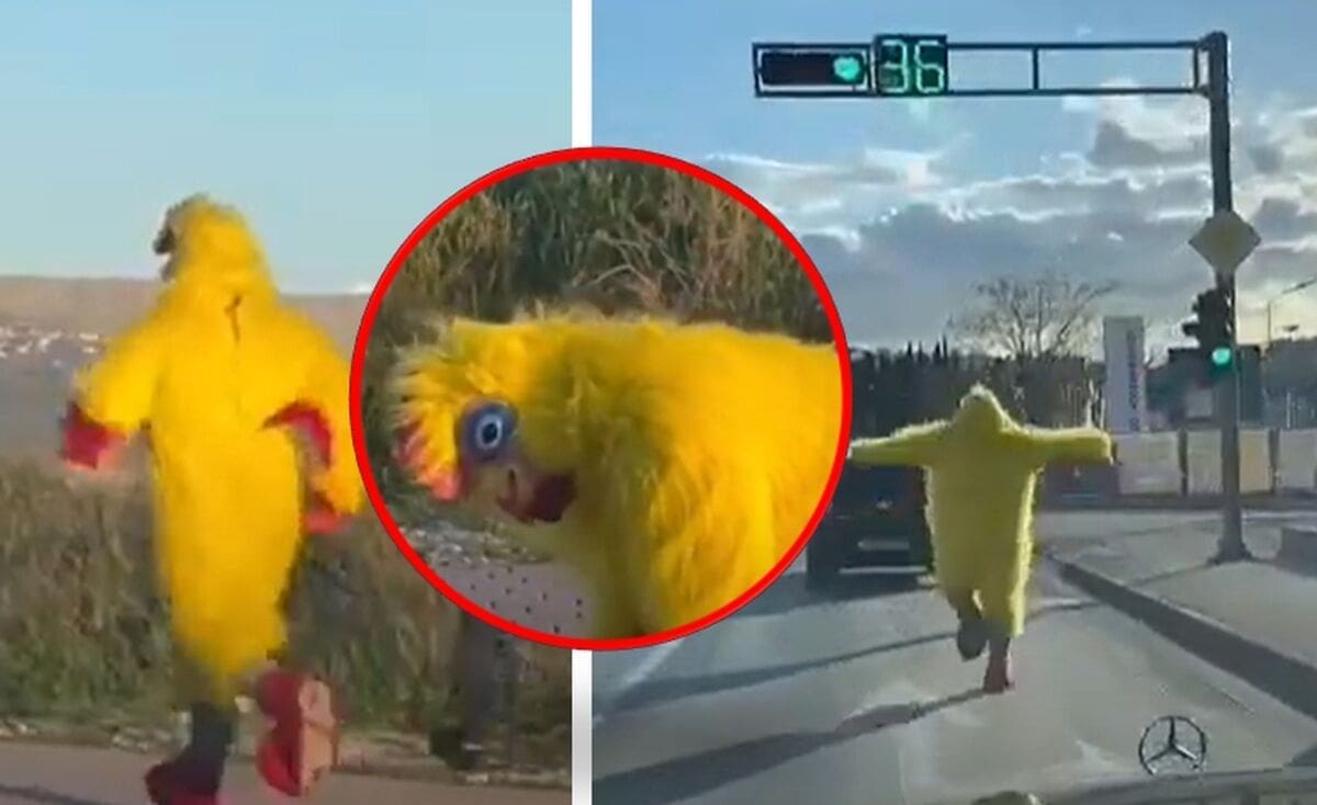 Naime, iz nama nepoznatih razloga čovjek obučen u "Žutokljunca" trčao je i relaksirao se po poznatoj splitskoj plaži, a prošetao je i gradom.