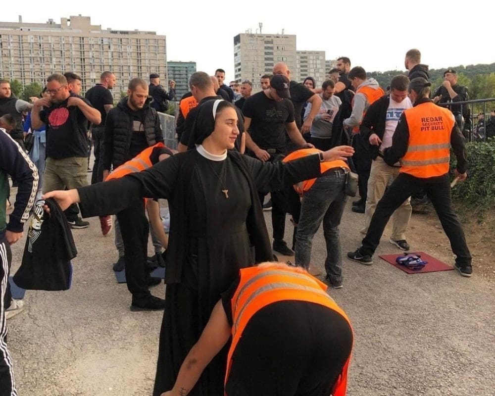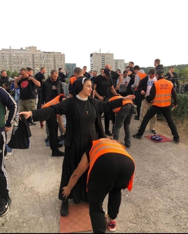 Na južnoj tribini bili su smješteni navijači Dinama. BBB-i su na stadion stigli u pratnji policije, a zatim je uslijedilo pregledavanje. Ono što je zanimljivo jest da se među navijačima BBB-a našla i jedna časna sestra.