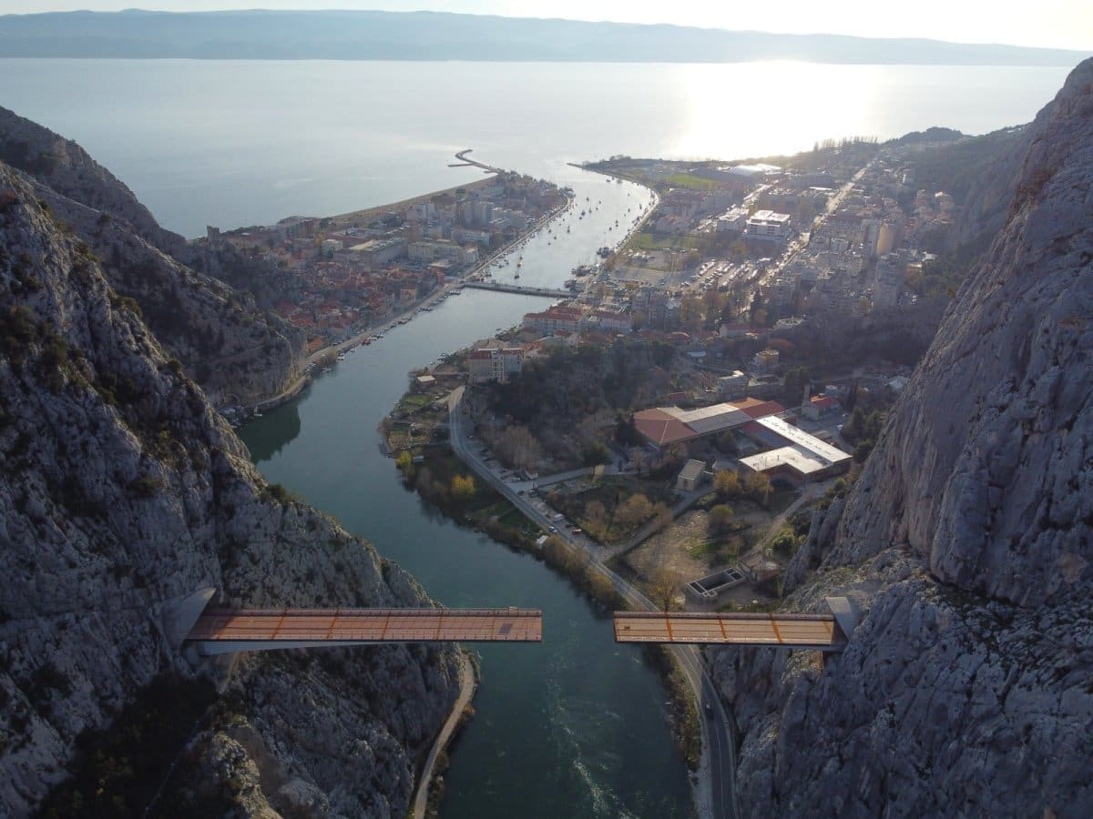 Iznad grada Omiša, poviše kanjona rijeke Cetine, u tijeku je izgradnja mosta koji je dio omiške zaobilaznice. Podsjetimo kako je riječ o projektu vrijednom 180 milijuna kuna, a do proljeća sljedeće godine bit će završena ta dionica duga 3,5 kilometra.
