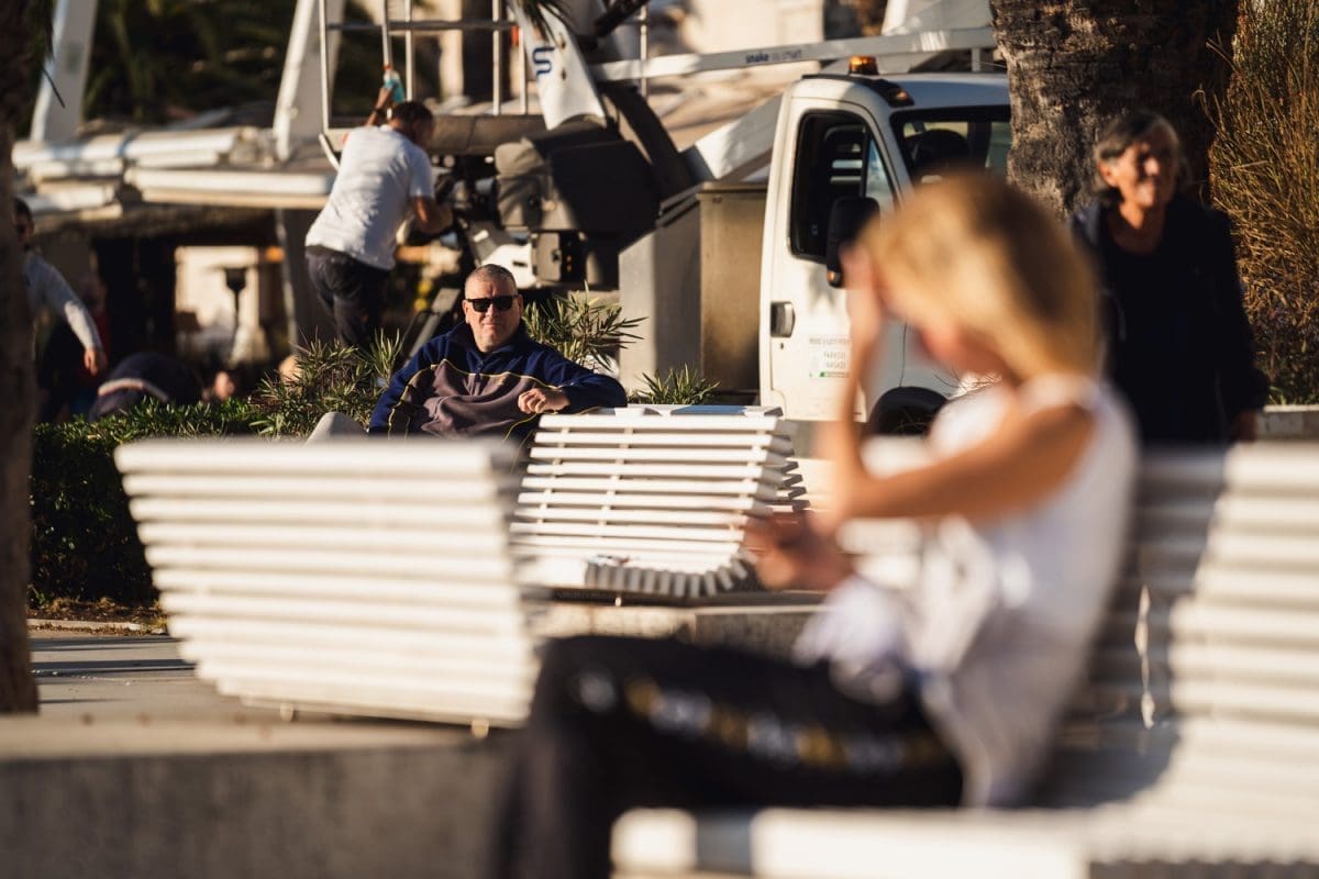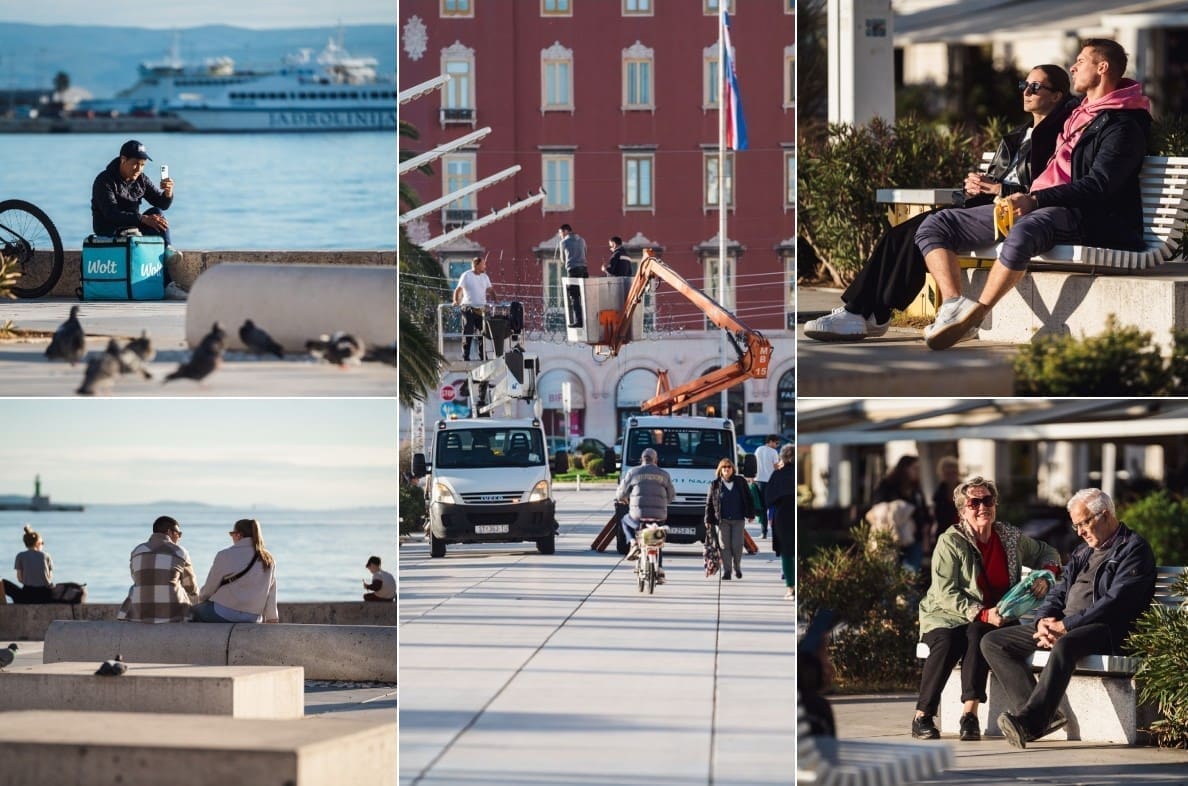 Oni malo stariji koji su već zagazili u penzijske dane svoje mjesto pod suncem našli su na klupama uz more. Listali su novine ili pak ćakulali. Ovi nešto malo mlađahniji izdvojili su koji euro pa sili na kavu na Rivu. Štekati nisu zjapili prazni, a i konobari su danas bili zadovoljniji.