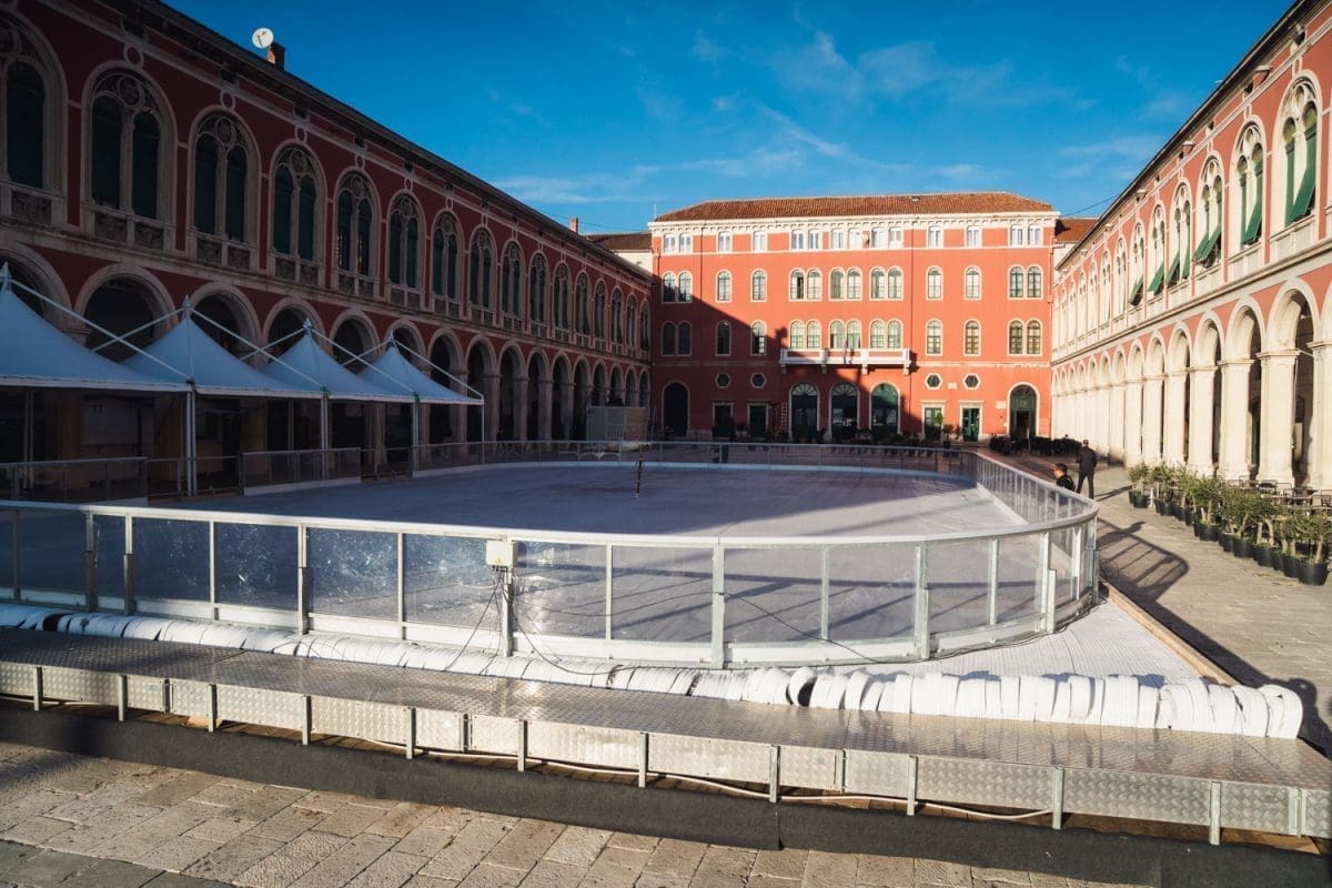 Na Prokurativama se postavlja klizalište, stiže advent u grad, kažu. Bit će veselja na klizaljkama za dicu, ali i za odrasle. Bit će ića i pića, kažu.