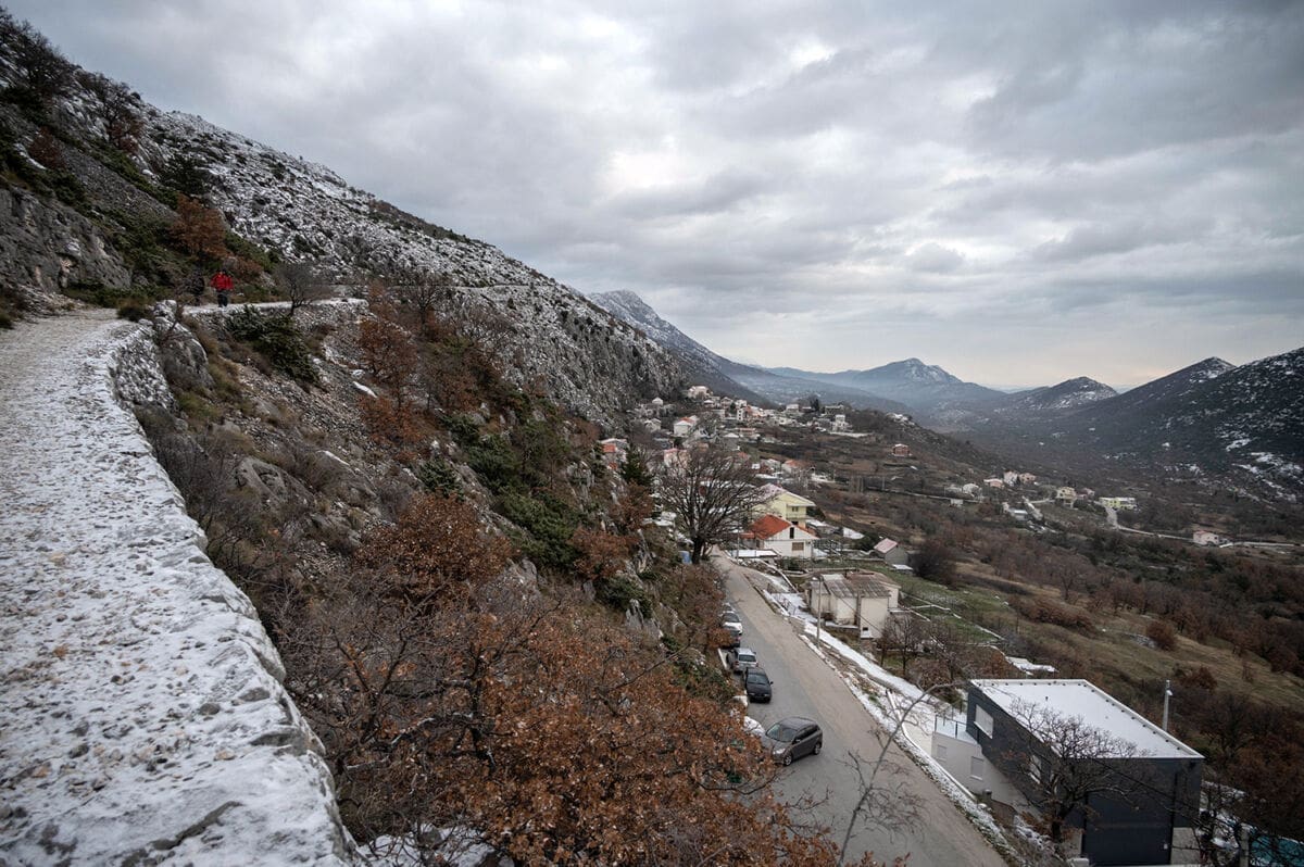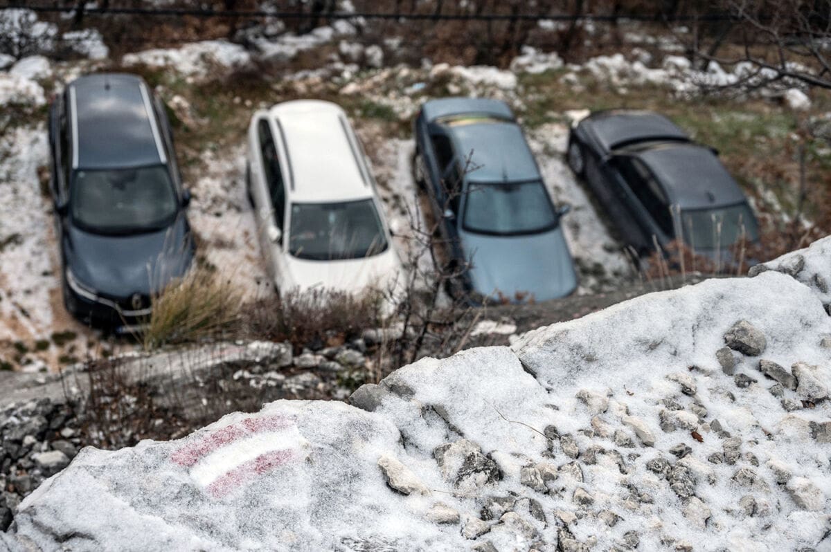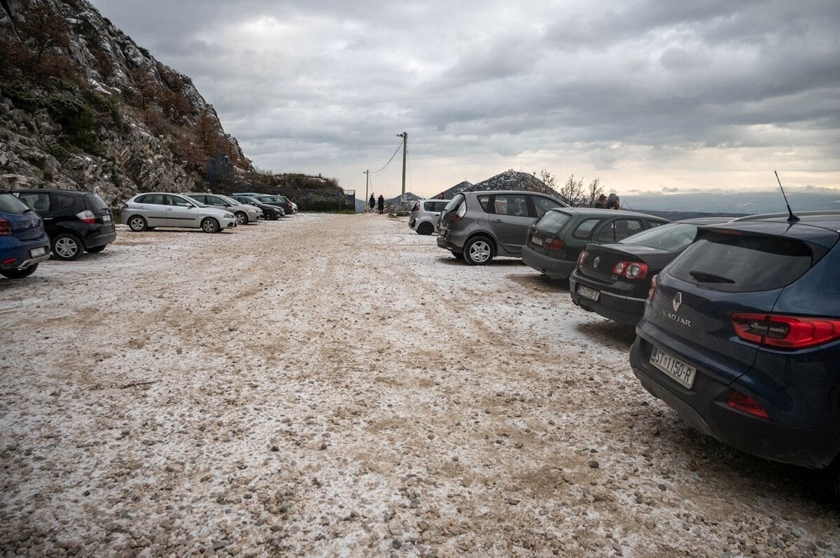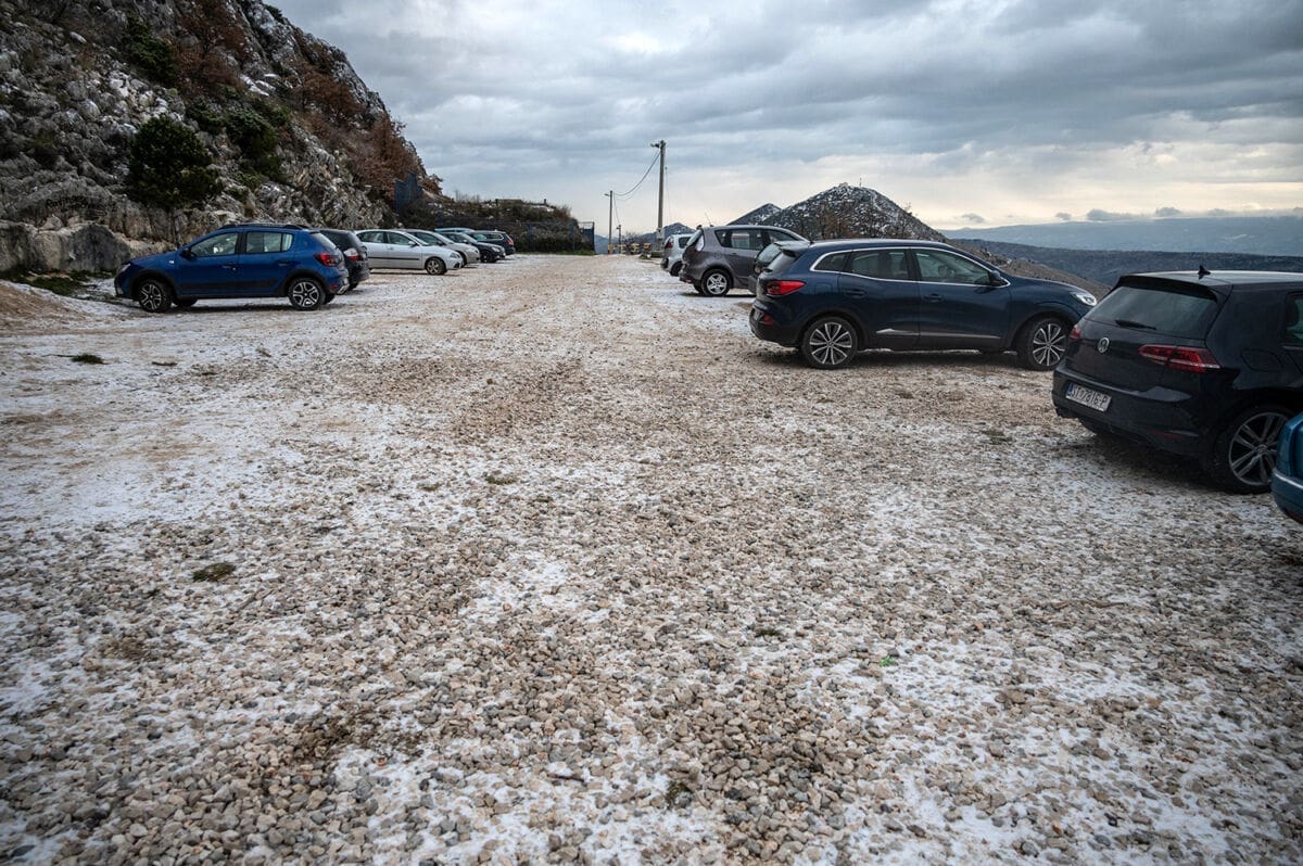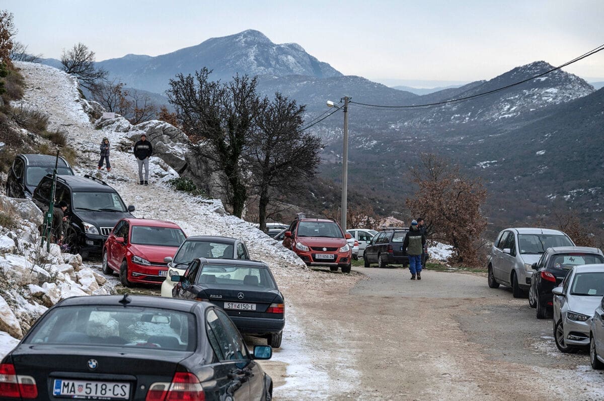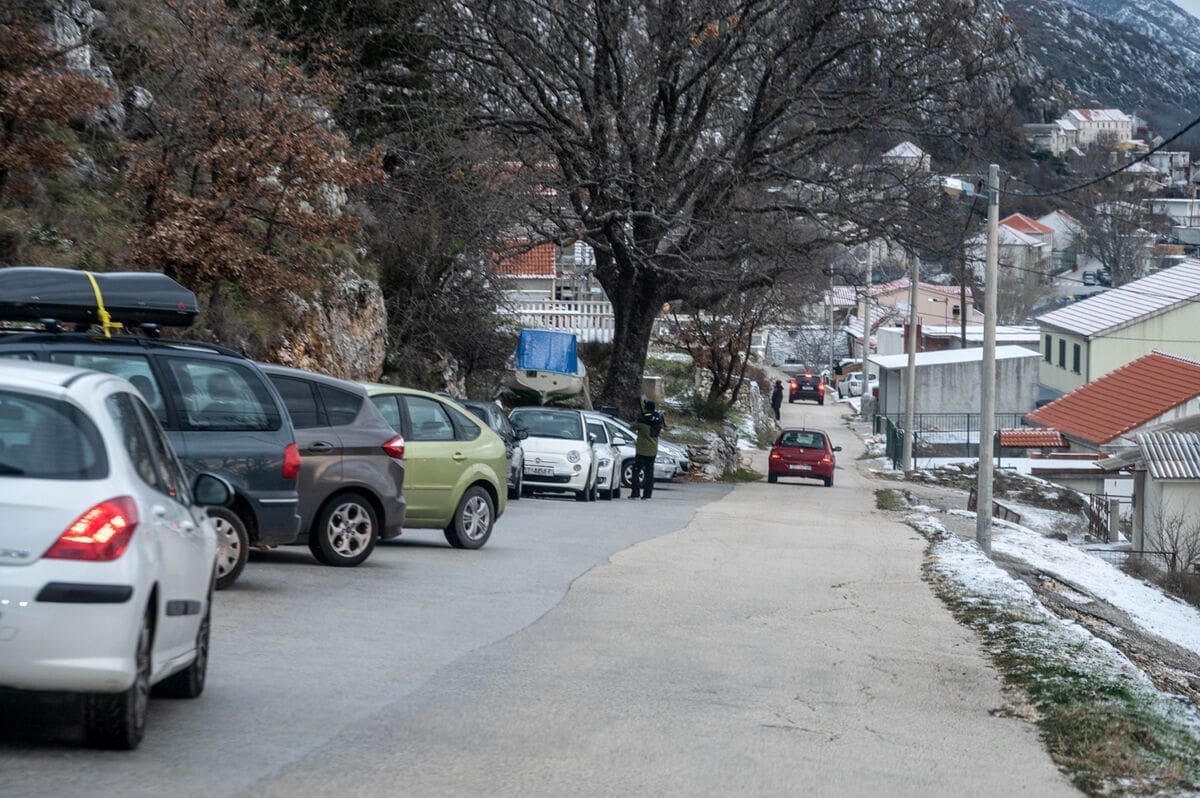 Iako u Sitnom snijega doslovno nije bilo ni za napraviti grudu, danas su na cesti prema ovom mosorskom naselju vladale prave gužve, a jako puno automobila bilo je parkirano na planinarskom parkiralištu iznad mjesta.