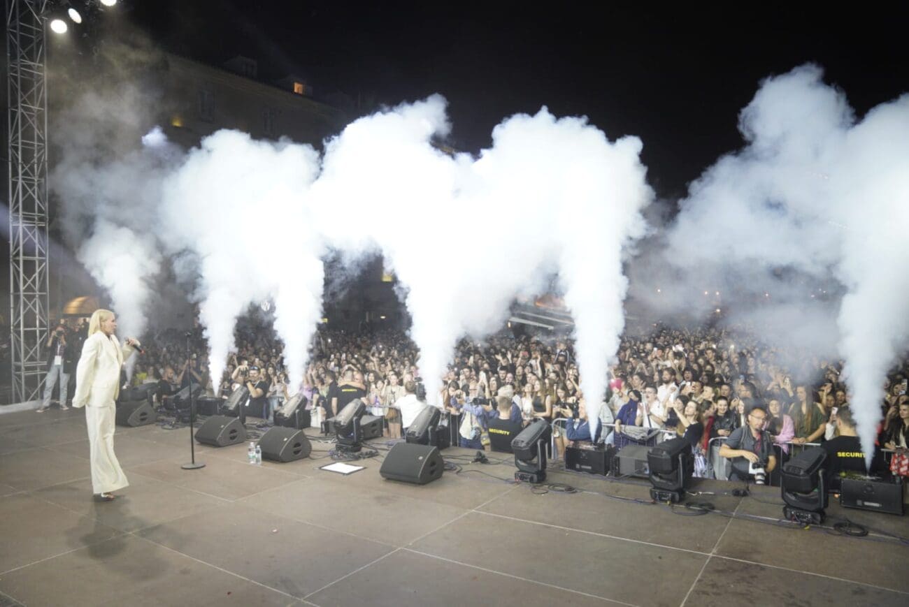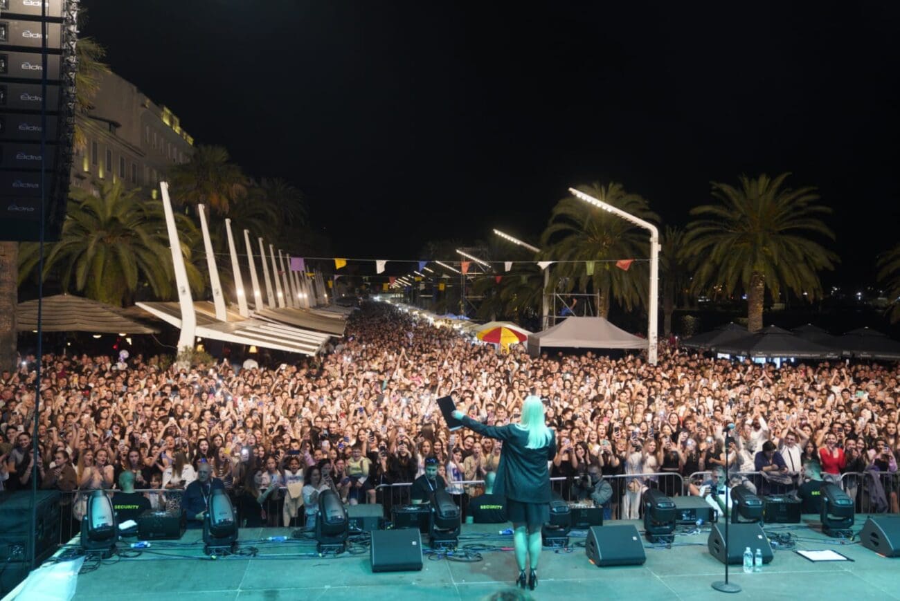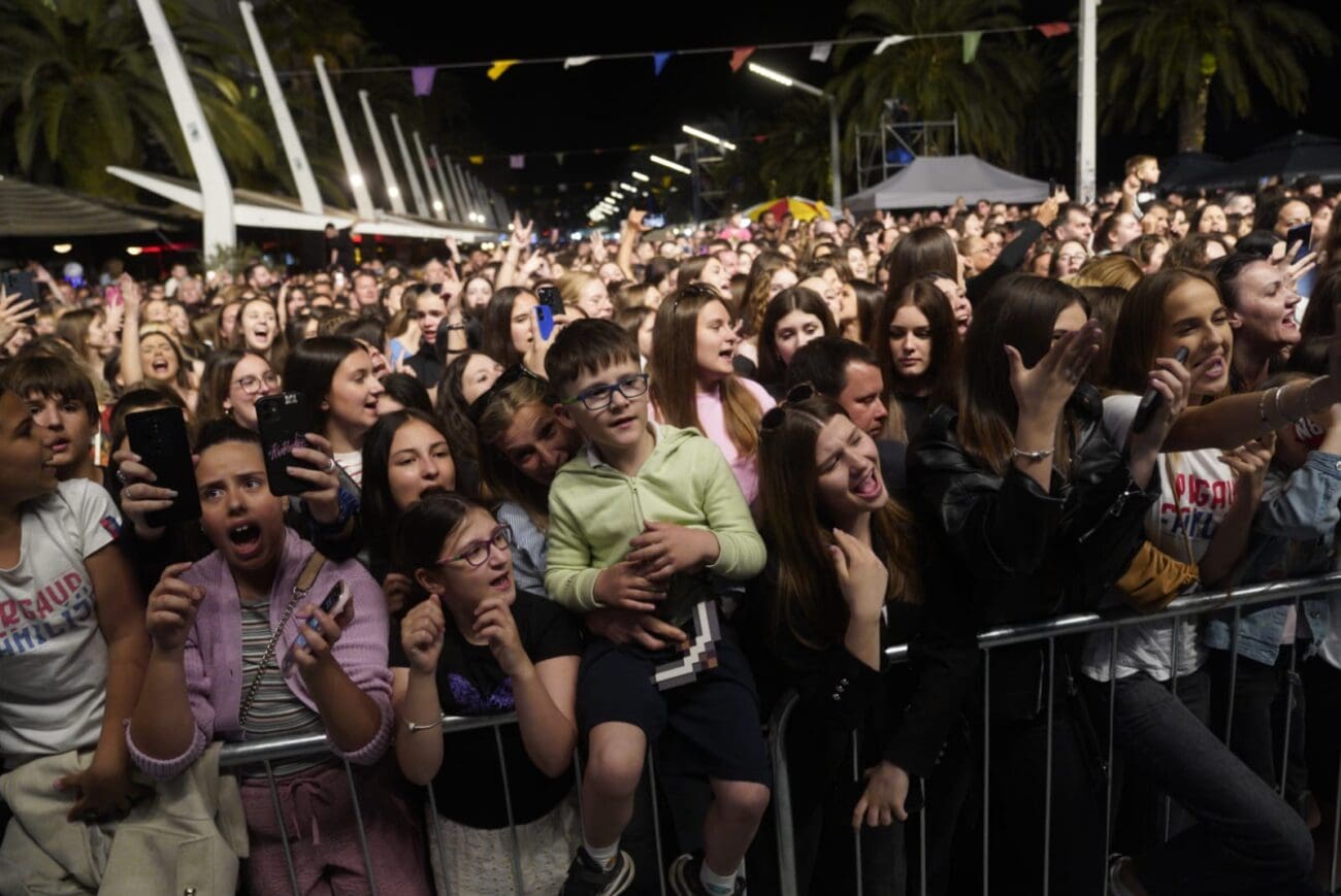 Uočili smo da se splitska pjevačica prekrižila neposredno prije nastupa, a bilo je nemoguće ne primijetiti da ima tremu pred nastup. Razumljivo jer je najteže nastupati pred domaćom publikom i to još na dan grada. Ipak, čim je Rozga zakoračila na pozornicu, krenuo je koncertni spektakl.