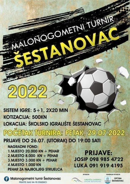 I ove godine organizira se Malonogometni turnir “Šestanovac", čiji je početak najavljen za 29. srpnja, 2022. godine. Tradicionalno održati će se na školskom igralištu Šestanovac.