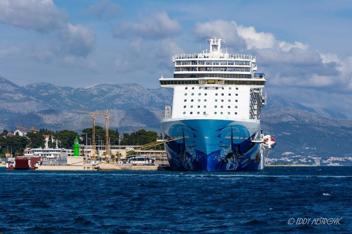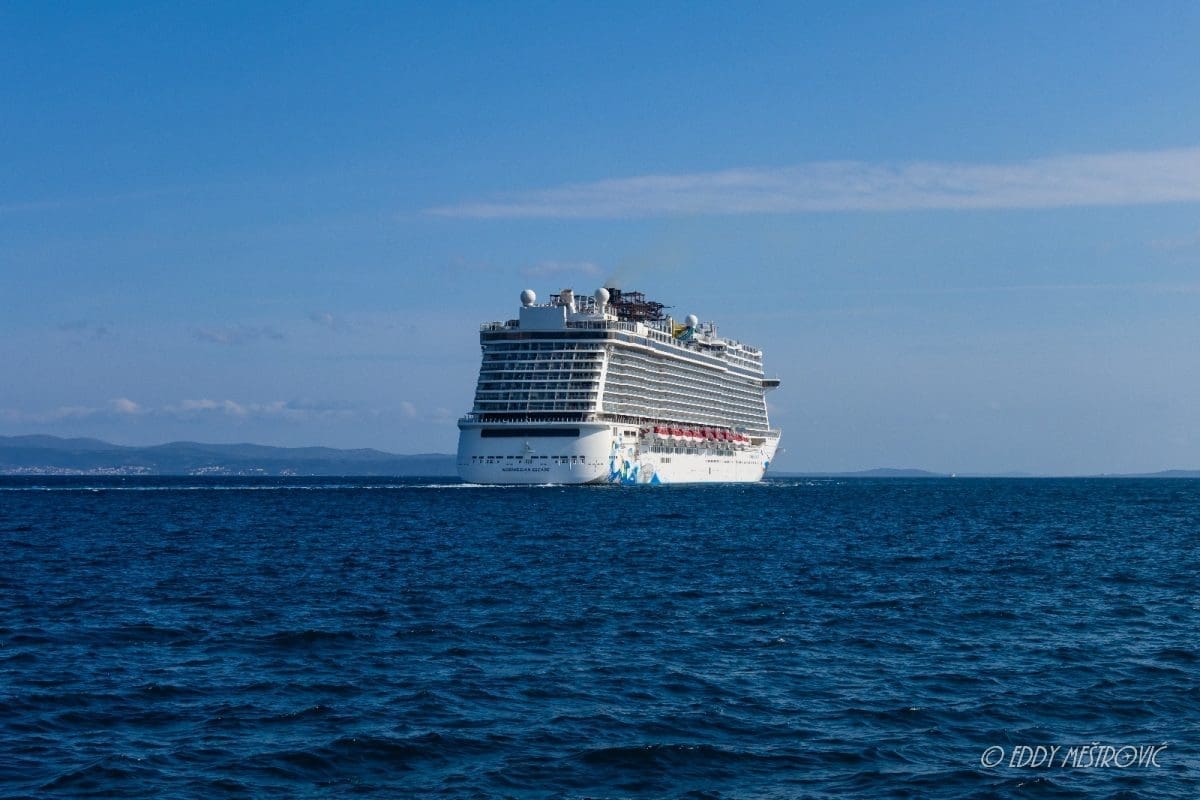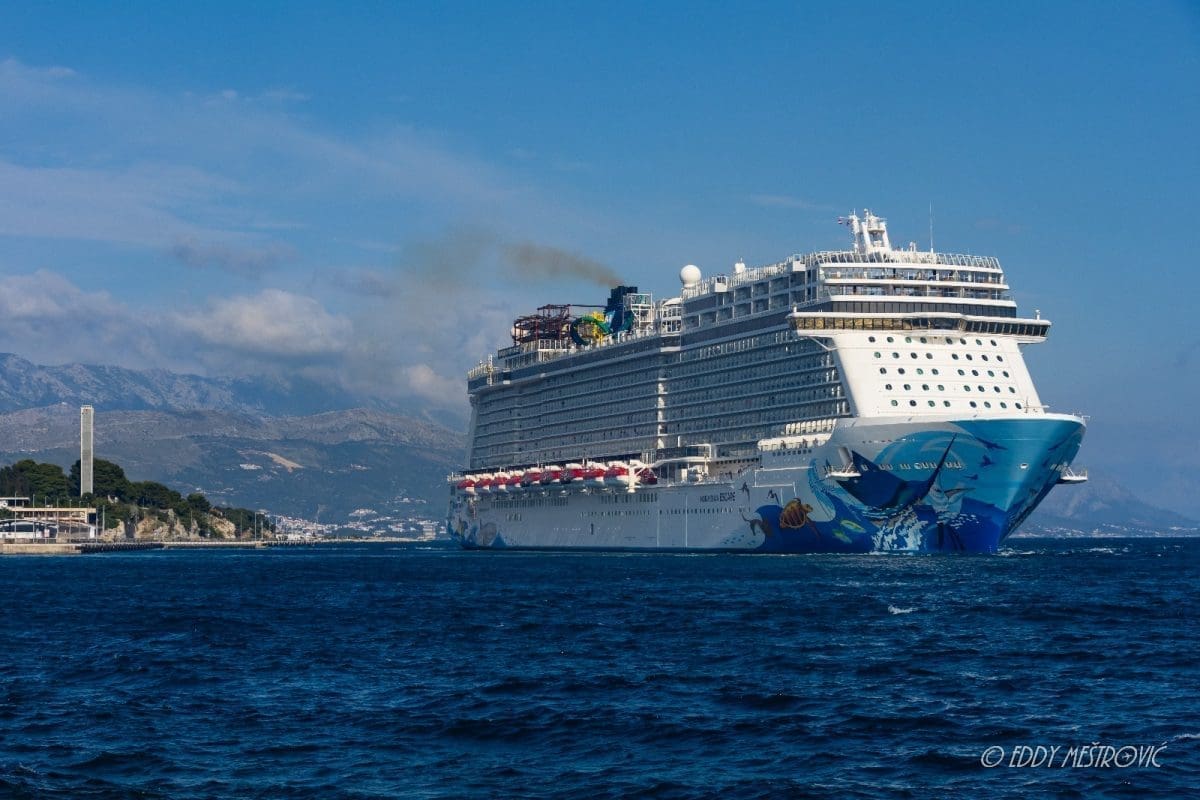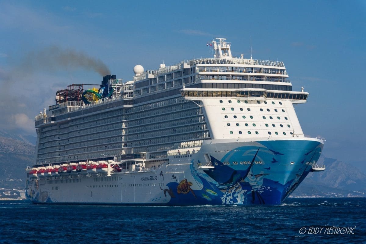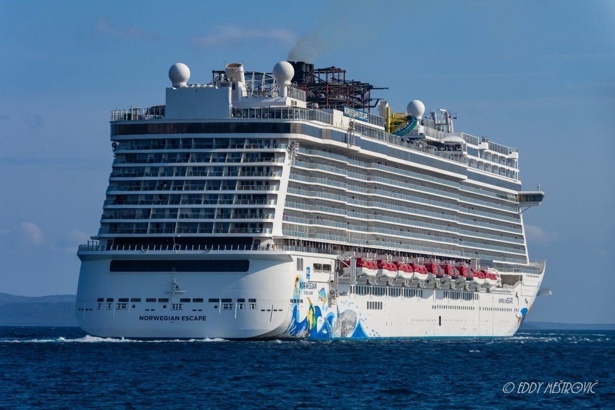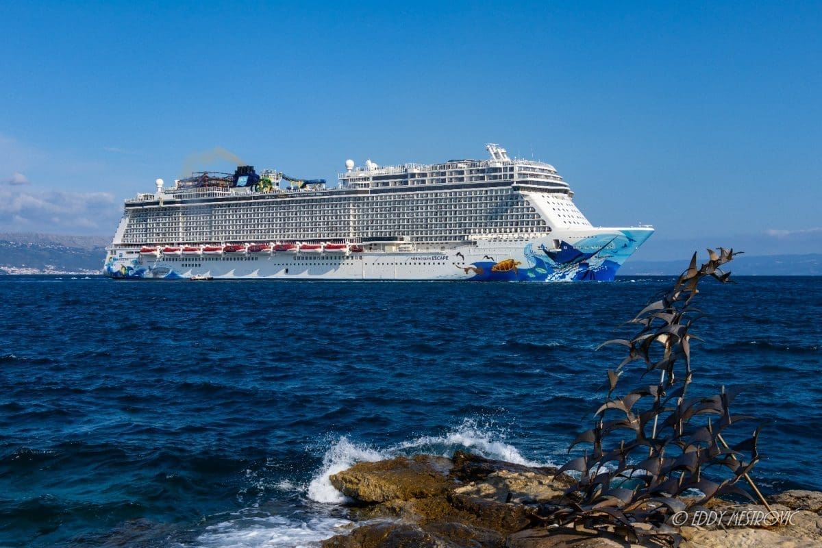 Veliki kruzer "Norwegian Escape" neko vrijeme je boravio u splitskoj luci, a danas su naši fotoreporteri snimili njegov odlazak iz Splita.