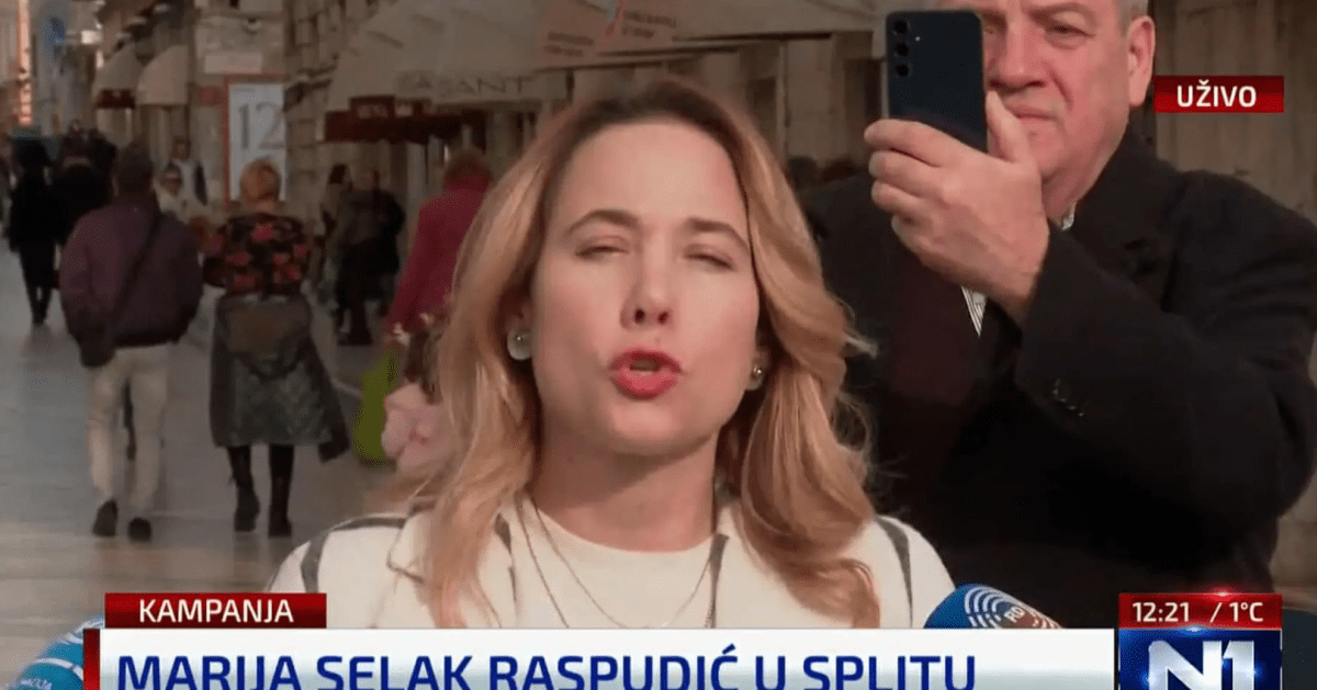 Društvenim mrežama i medijima širi se javljanje Marije Selak Raspudić za N1 televiziju iz Splita. No, razlog tome nije ništa što je predsjednička kandidatkinja govorila, nego ono što se događalo iza nje.