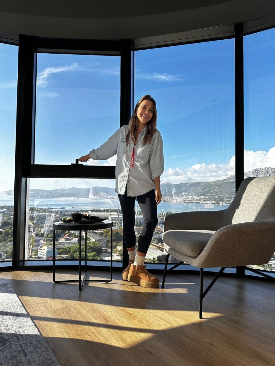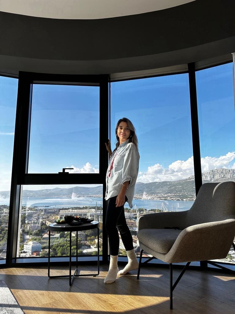 Boravak u prvom AC hotelu u Hrvatskoj dokumentirala je i na svom Instagram profilu objavivši niz fotografija i snimki iz ostakljenog apartmana iz kojeg se pruža veličanstven pogled na panoramu Splita i okolice.