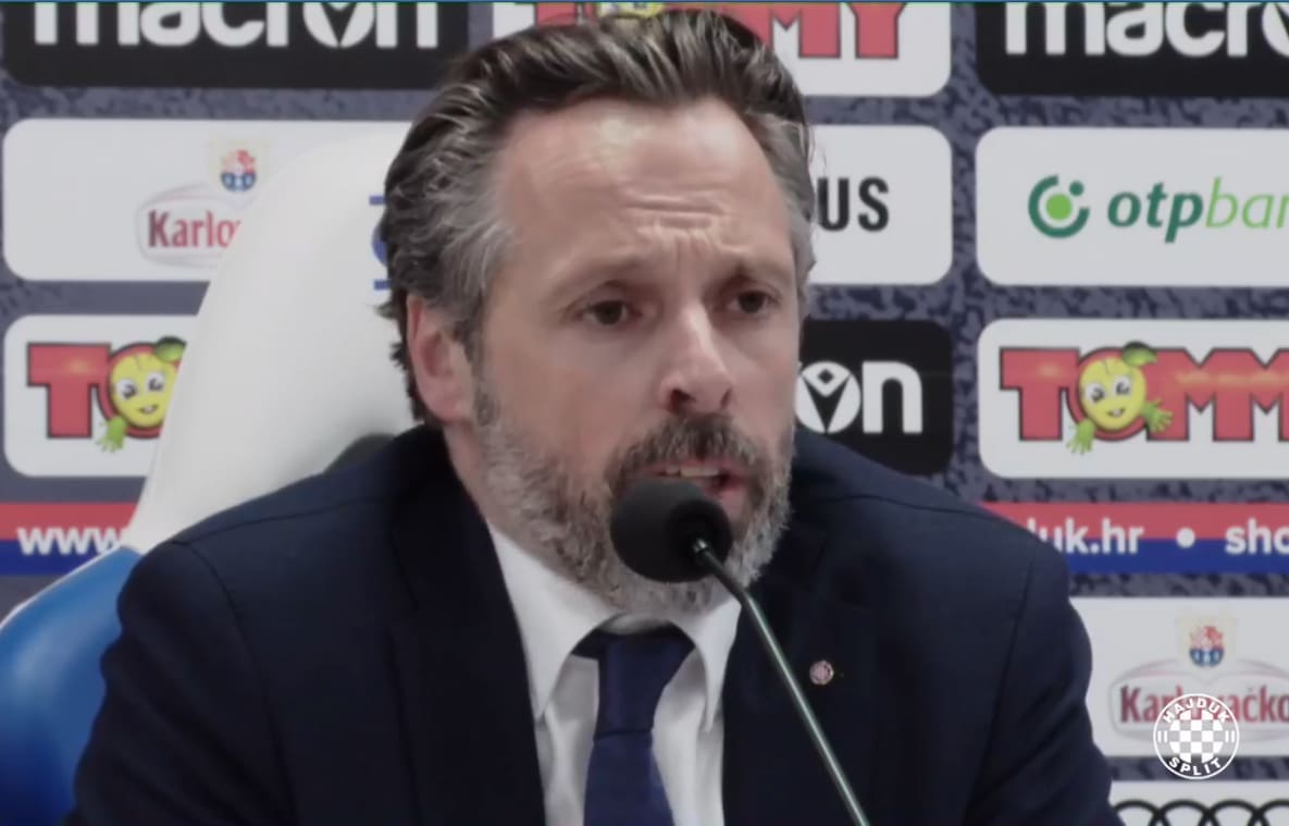 Na press konferenciju na Poljudu došao je predsjednik Hajduka Marin Brbić, sportski direktor Saša Bjelanović i dopredsjednik uprave kluba Lukša Jakobušić.