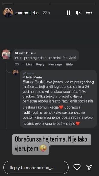Marin Miletić pohvalio se odgovorom pratiteljici koja mu je uputila kritiku na Facebooku.