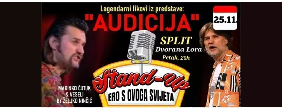 U Lori 25. studenog u 20 sati, nakon duže pauze Željko Ninčić, autor, glumac čuvene Audicije ponovo dolazi sa svojom stand up predstavom "Ero s ovoga svijeta" i likovima: Hercegovcem Marinkom Ćutukom i Bosancem, Veselim - Primi me.