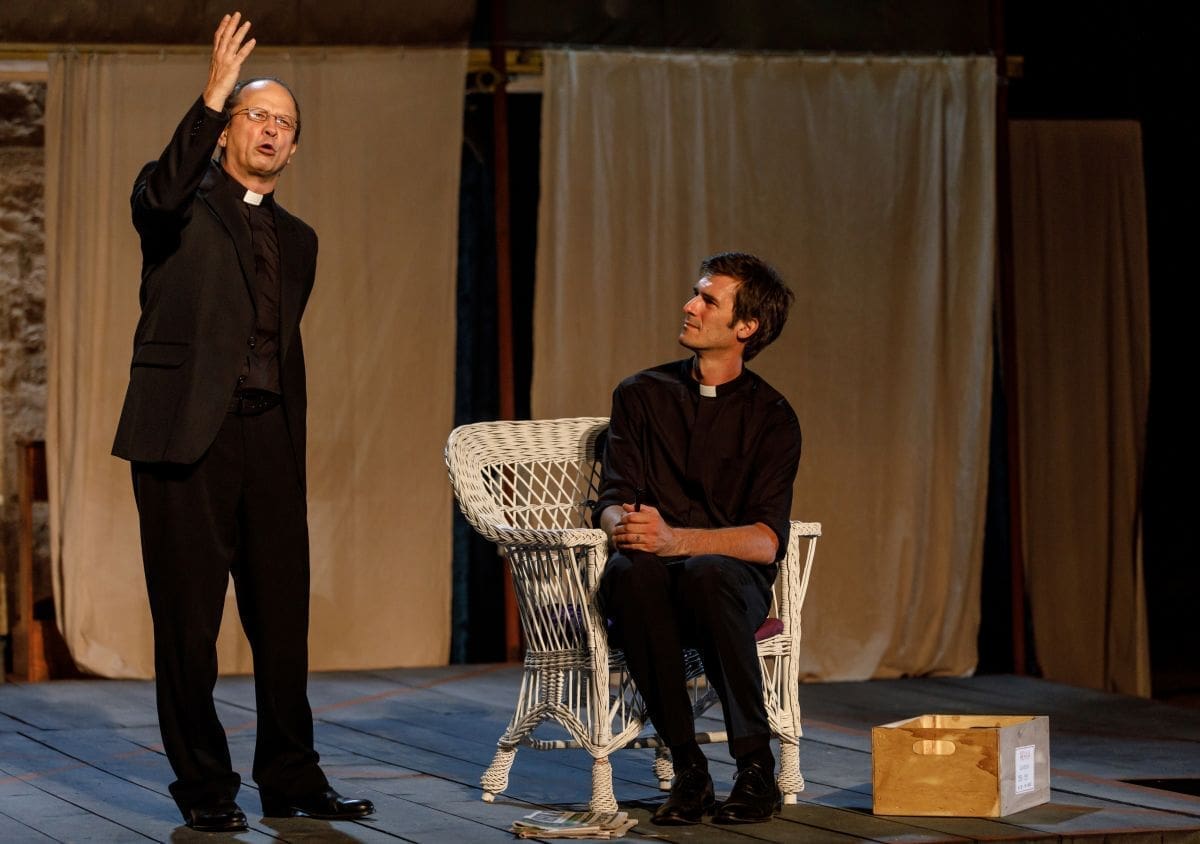 Predstavu režira Dražen Ferenčina, naslovnu ulogu Glorije, odnosno časne sestre Magdalene, tumači Katarina Romac, don Jere je Mijo Jurišić, a ostali protagonisti su: Trpimir Jurkić kao don Zane, Vicko Bilandžić kao Floki Fleche, Filip Radoš u ulozi Biskupa, Nenad Srdelić kao don Florijo, te Krešimir Jelić, Tajana Jovanović, Alen Čelić, Maro Drobnić i Luka Čerjan.