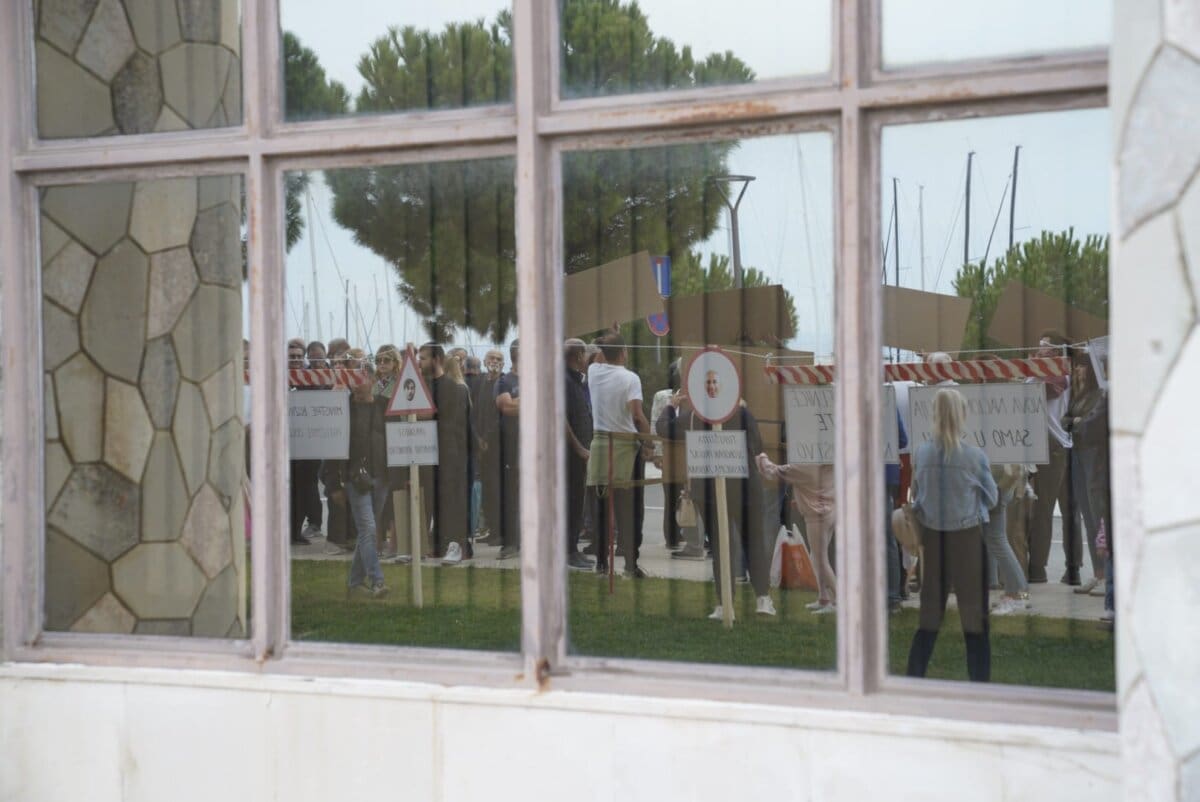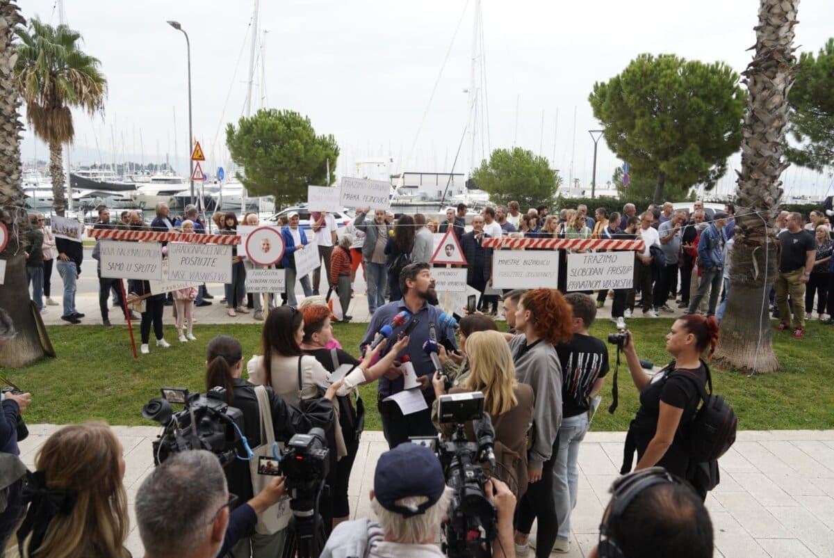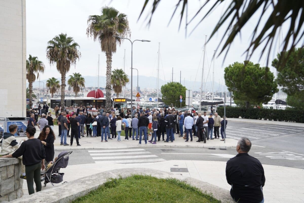 Ispred Banovine se skupilo više od 120 ljudi, prema procjeni PU splitsko-dalmatinske.