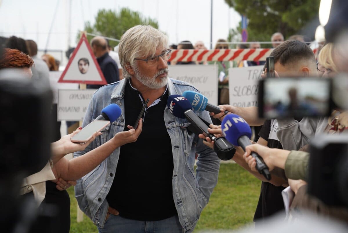 Prosvjedovali su noseći transparente ispred zgrade Banovine uz zvuk pjesme "Tvoja zemlja" Vice Vukova.