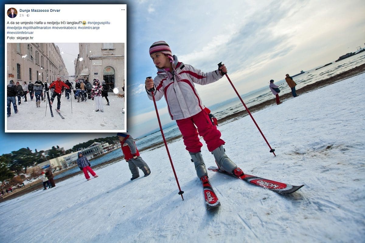 "A da se umjesto Halfa u nedjelju trči langlauf?" - napisala je Dunja uz priloženu fotografije snijegom zatrpane Marmontove ulice u Splitu, inače snimljenu 2012. godine za vrijeme legendarne cikline Gabor. Na fotografiji se vide i Splićani na skijama, pa je očito da meteorologinja aludira na snježnu prognozu za Split na dan Splitskog polumaratona.