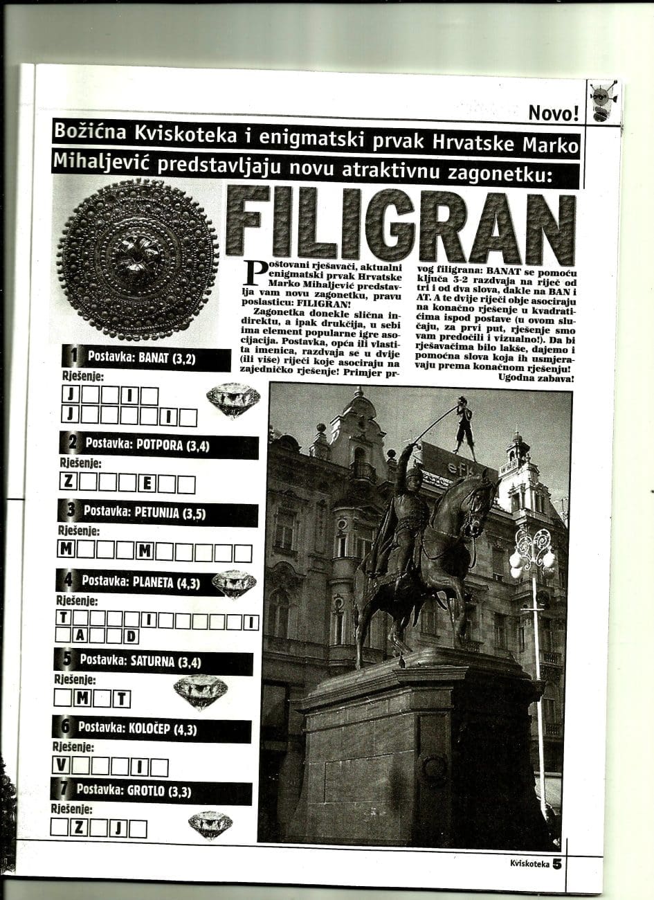 „Problem je što imamo vrlo malo mladih enigmata. Hrvatsku enigmatiku danas uglavnom održava ‘stara garda’ zagonetača, uz nekolicinu izvrsnih autora iz susjednih zemalja.“