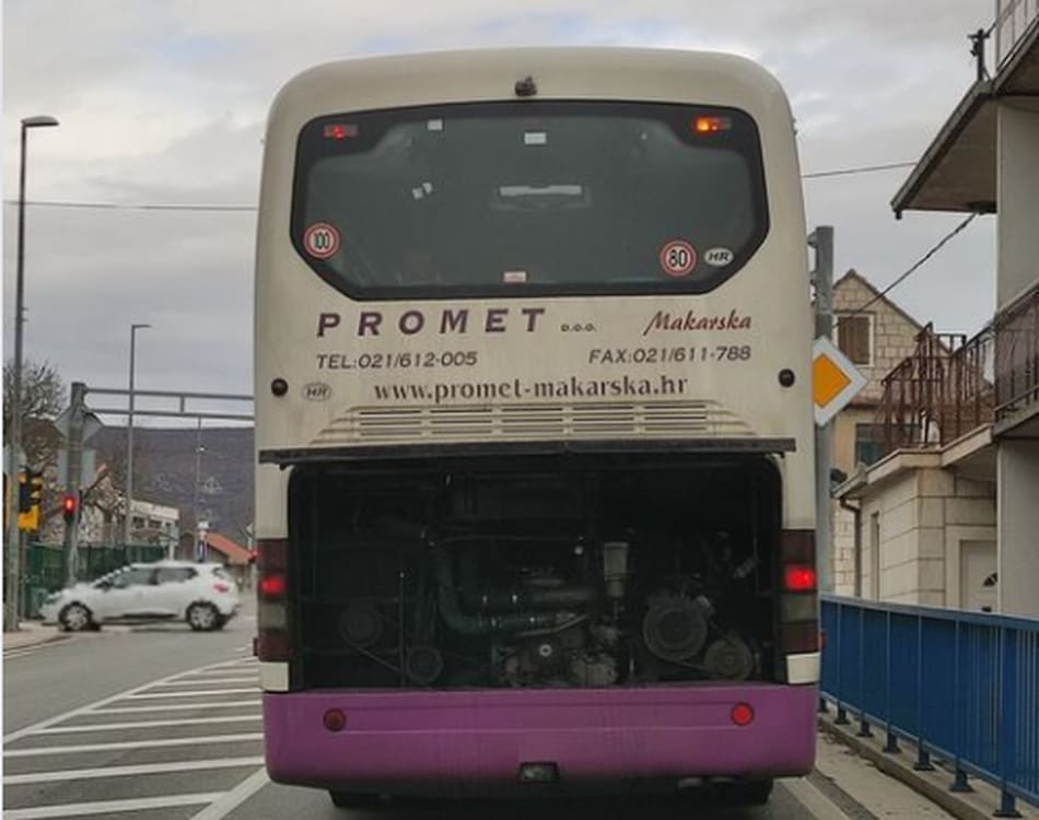 Naime, kako je na fotografiji vidljivo, autobusu je potpuno otvoren stražnji dio gdje mu se nalazi motor.