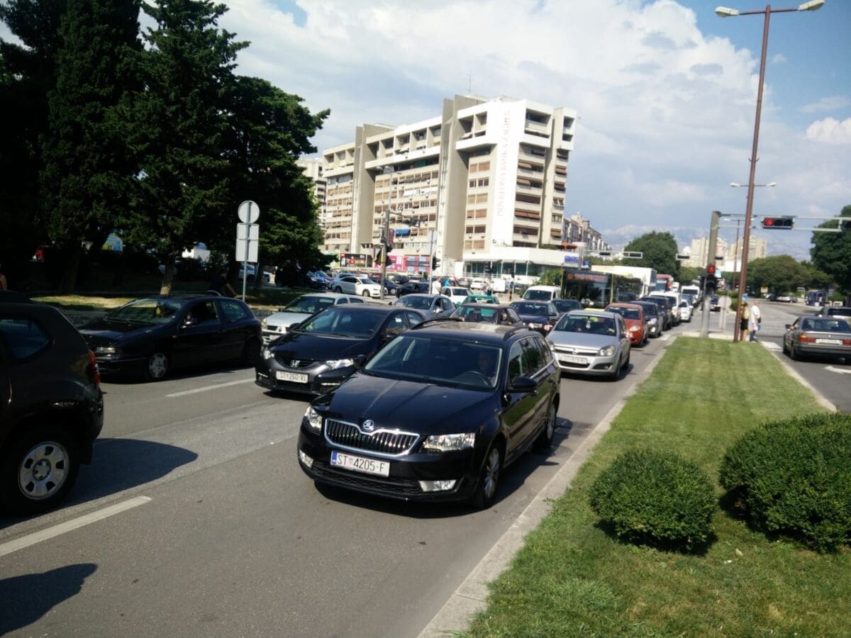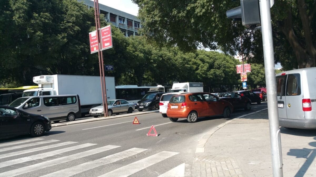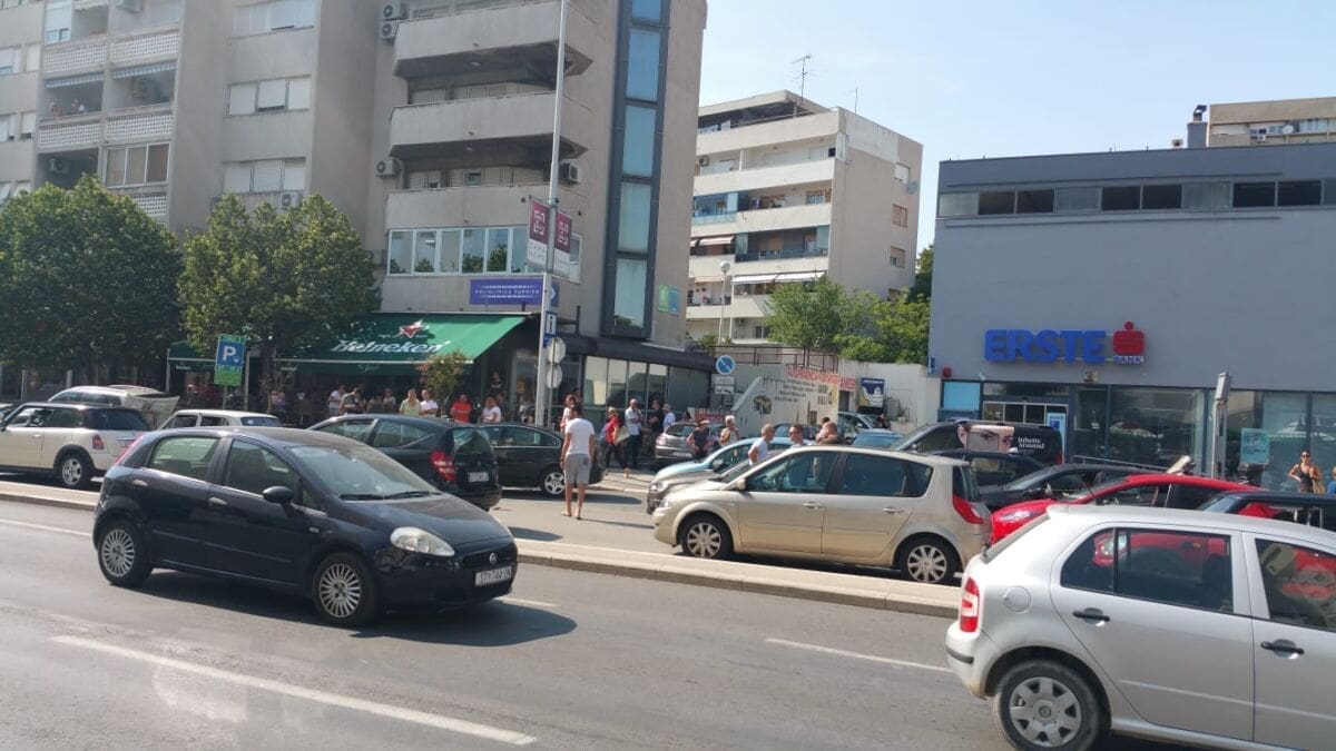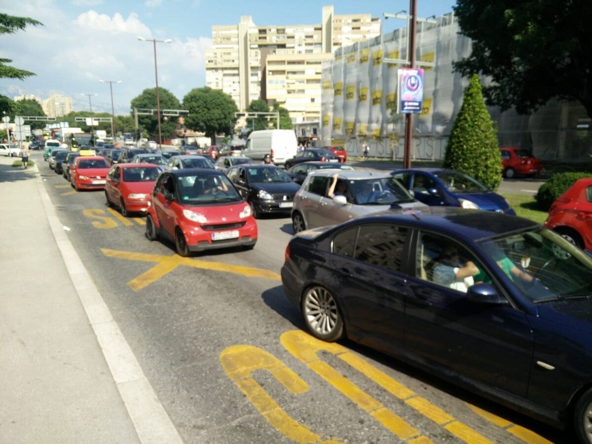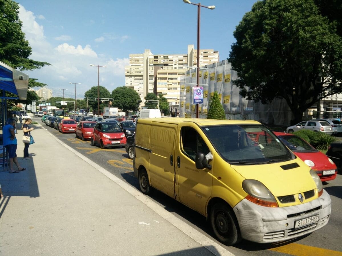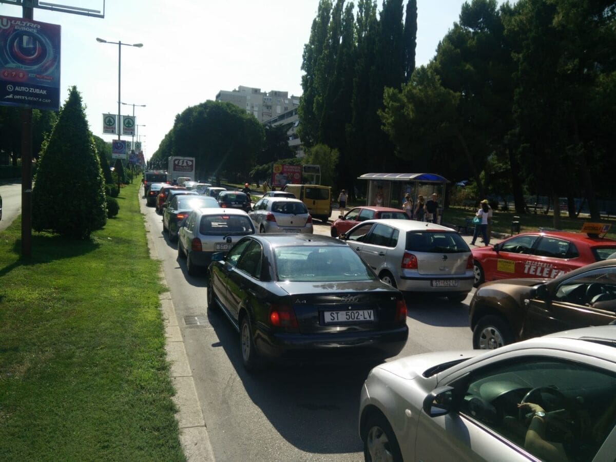 U Splitu se daleko najveće gužve u Poljičkoj ulici. Dok je u svakom smjeru po jedna traka slobodna, ostale trake gotovo su neprohodne zbog neobično velikog broja automobila koji su upalili signalizacijska svjetla, a vozači su pred svoje automobile postavili znakove za opasnost i obukli zaštitne prsluke.
