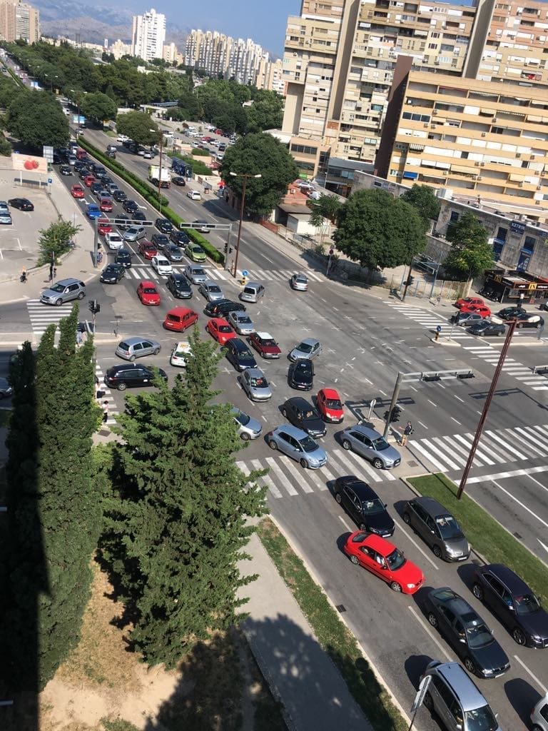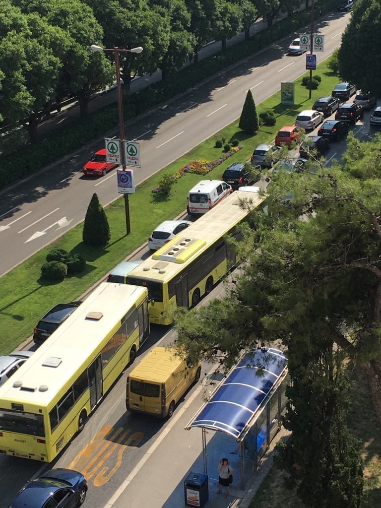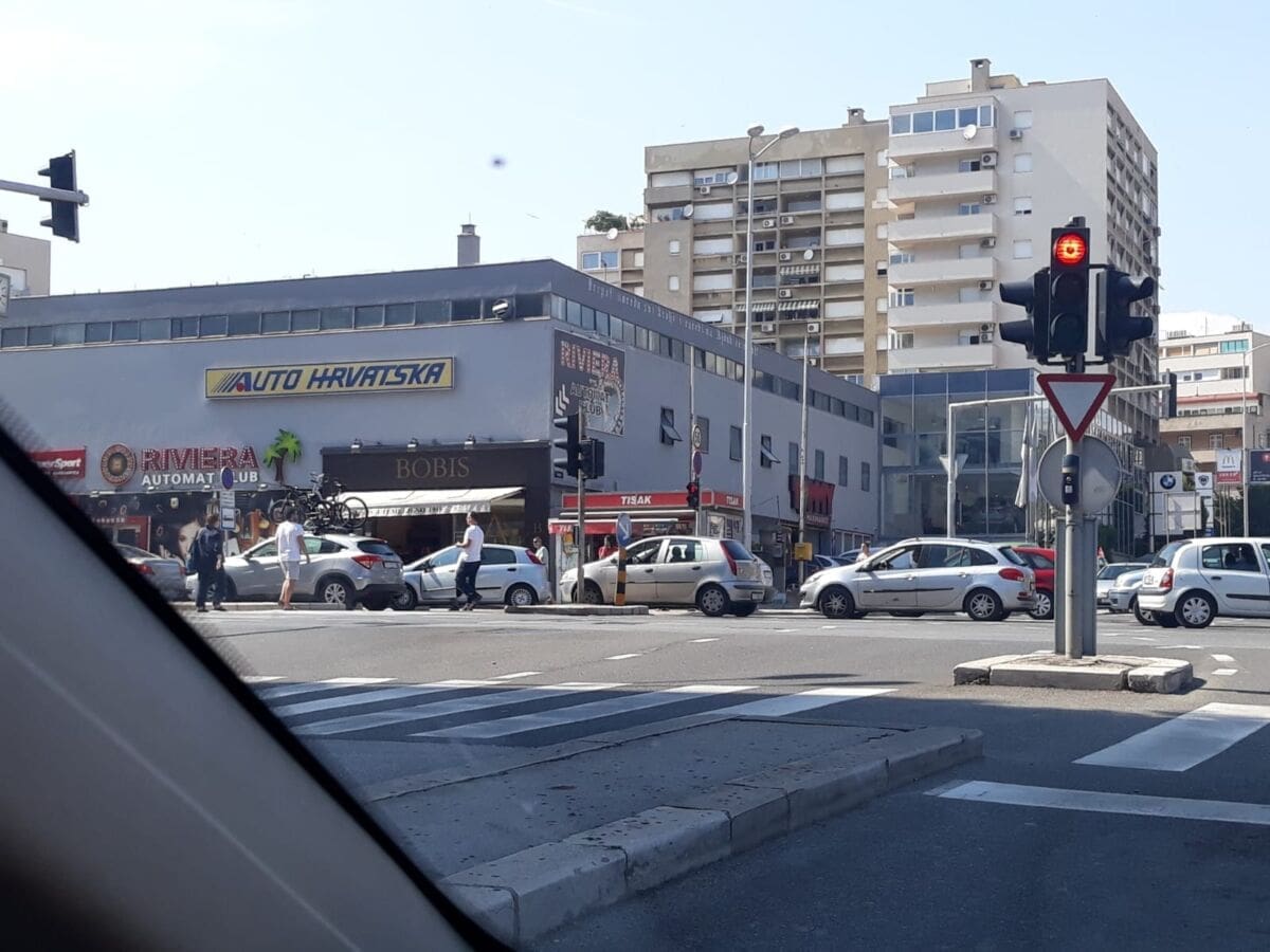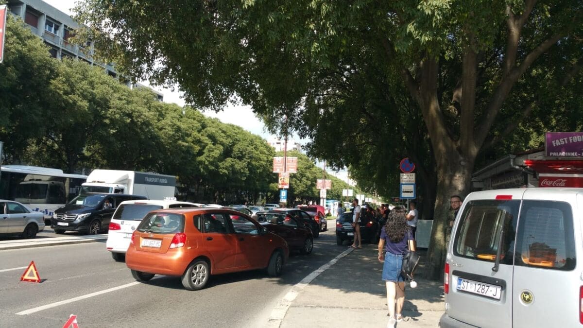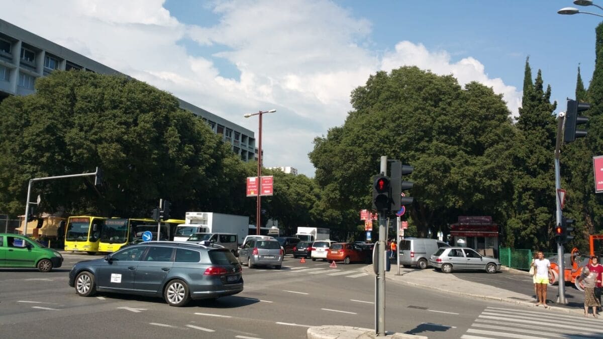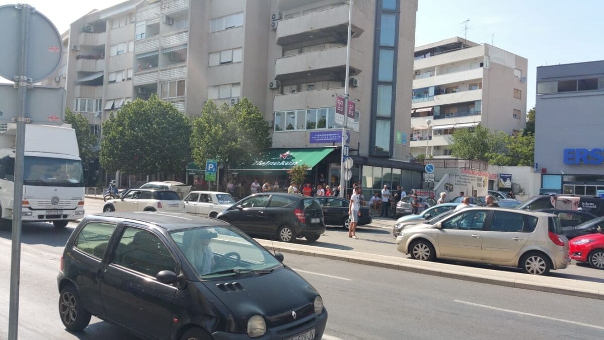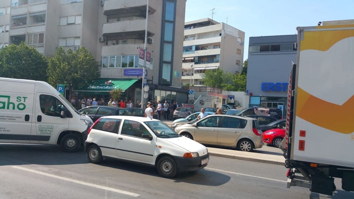 U Splitu se daleko najveće gužve u Poljičkoj ulici. Dok je u svakom smjeru po jedna traka slobodna, ostale trake gotovo su neprohodne zbog neobično velikog broja automobila koji su upalili signalizacijska svjetla, a vozači su pred svoje automobile postavili znakove za opasnost i obukli zaštitne prsluke.