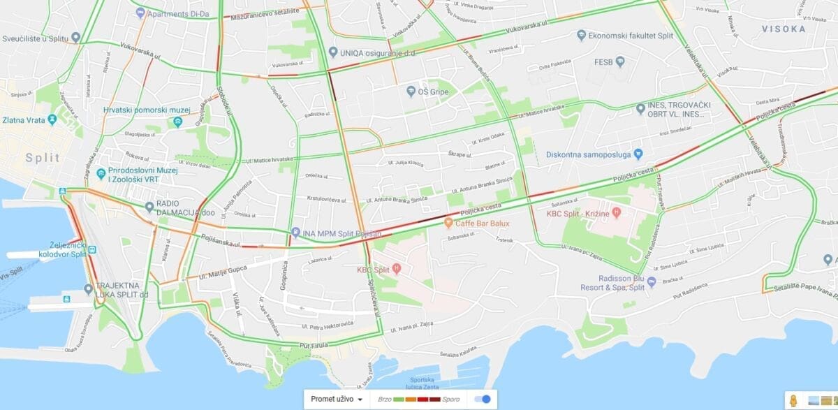 Prema izvještajima HAK-a, ali i prema detekciji gustoće prometa na Googleu, u mnogim dalmatinskim mjestima zabilježene su velike prometne gužve iza 15 sati i 30 minuta.