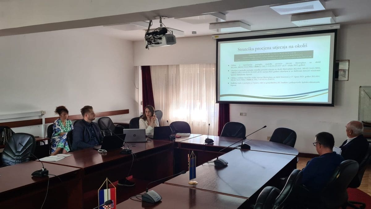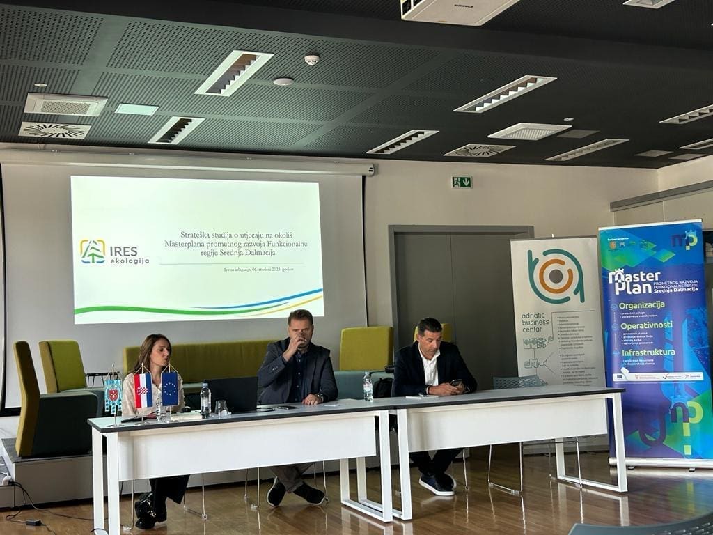 Stratešku studiju utjecaja na okoliš Masterplana prometnog razvoja funkcionalne regije Srednja Dalmacija predstavila je Martina Rupčić u ime izrađivača, tvrtke IRES ekologija. Govorila je o zakonima i propisima na kojima se ona temelji, provedenim analizama i postupku koji je prethodio njegovoj izradi i sadržaju koji je usklađen s lokalnim, nacionalnim i međunarodnim planovima i dokumentima.