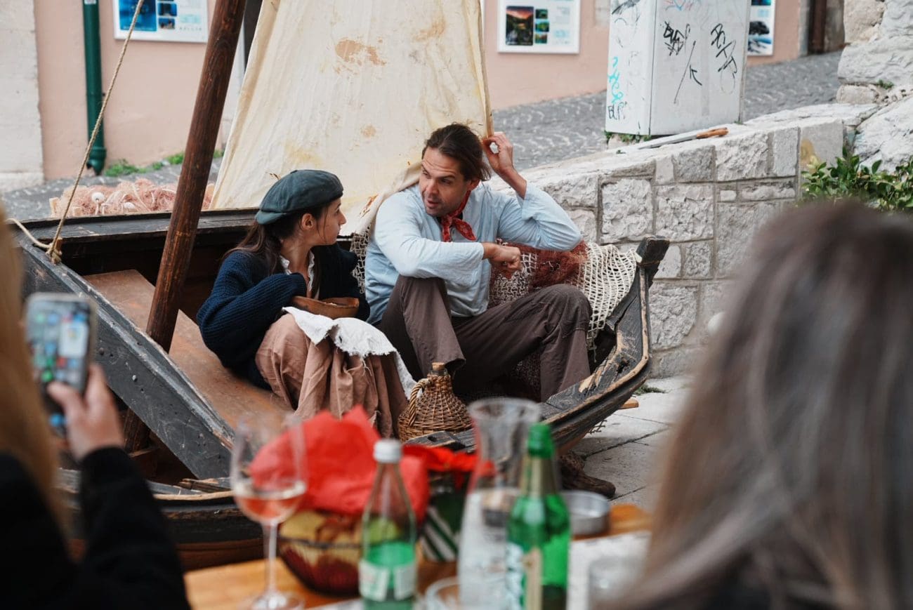 Poseban emotivni pečat događaju dala je izvedba predstave o Roku i Dujki, istinite i dirljive priče o ljubavi siromašnog ribarskog Splita, koju je u književnosti ovjekovječio Miljenko Smoje. Glumci kazališta Ritam igre još su jednom pokazali najbolje od sebe – nenametljivo, iskreno i snažno, igrajući među ljudima, za istim stolovima, brišući granicu između publike i pozornice. Njihova izvedba bila je jednako životna kao i priča koju su prenosili, a emocija koju su donijeli dodatno je povezala jelo, priču i prostor Matejuške.