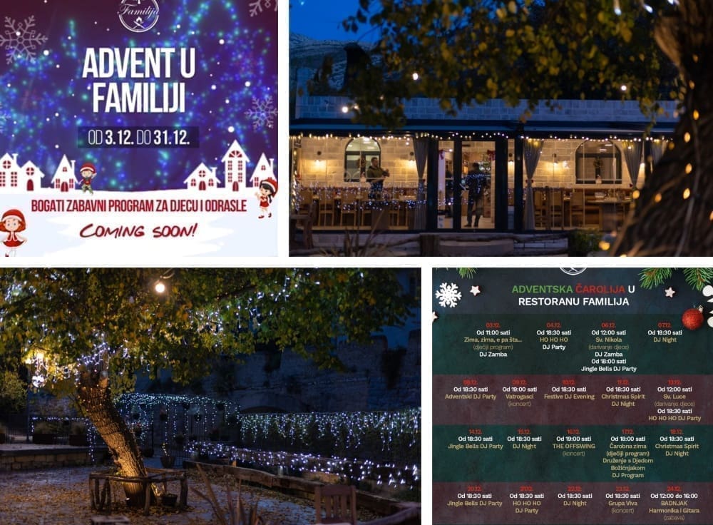 Adventska čarolija u potpunosti će preuzeti Familiju u razdoblju od 3.12. do 31.12., a restoran će postati mjesto na kojem ćete iz dana u dan uživati u koncertima, DJ nastupima, dnevnim zabavama za djecu i roditelje te prije svega u izvrsnoj hrani. Bogati dnevni i noćni program pretvoriti će Familiju u centar zbivanja, a izbor hrane oduševit će i najzahtjevnija nepca.
